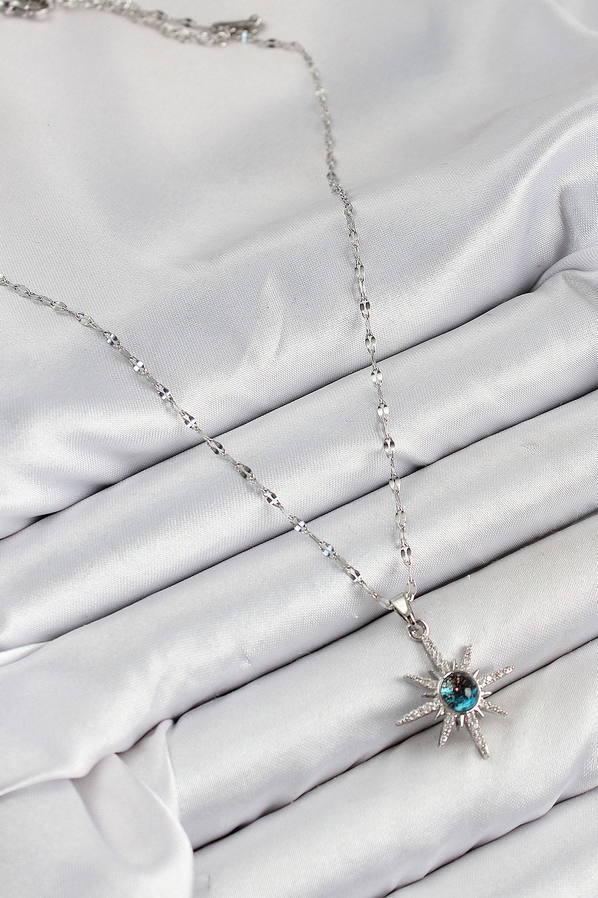 316L Çelik Zirkon Taşlı Kutup Yıldızı Model Gümüş Renk Kadın Kolye - TJ-BKO10443
