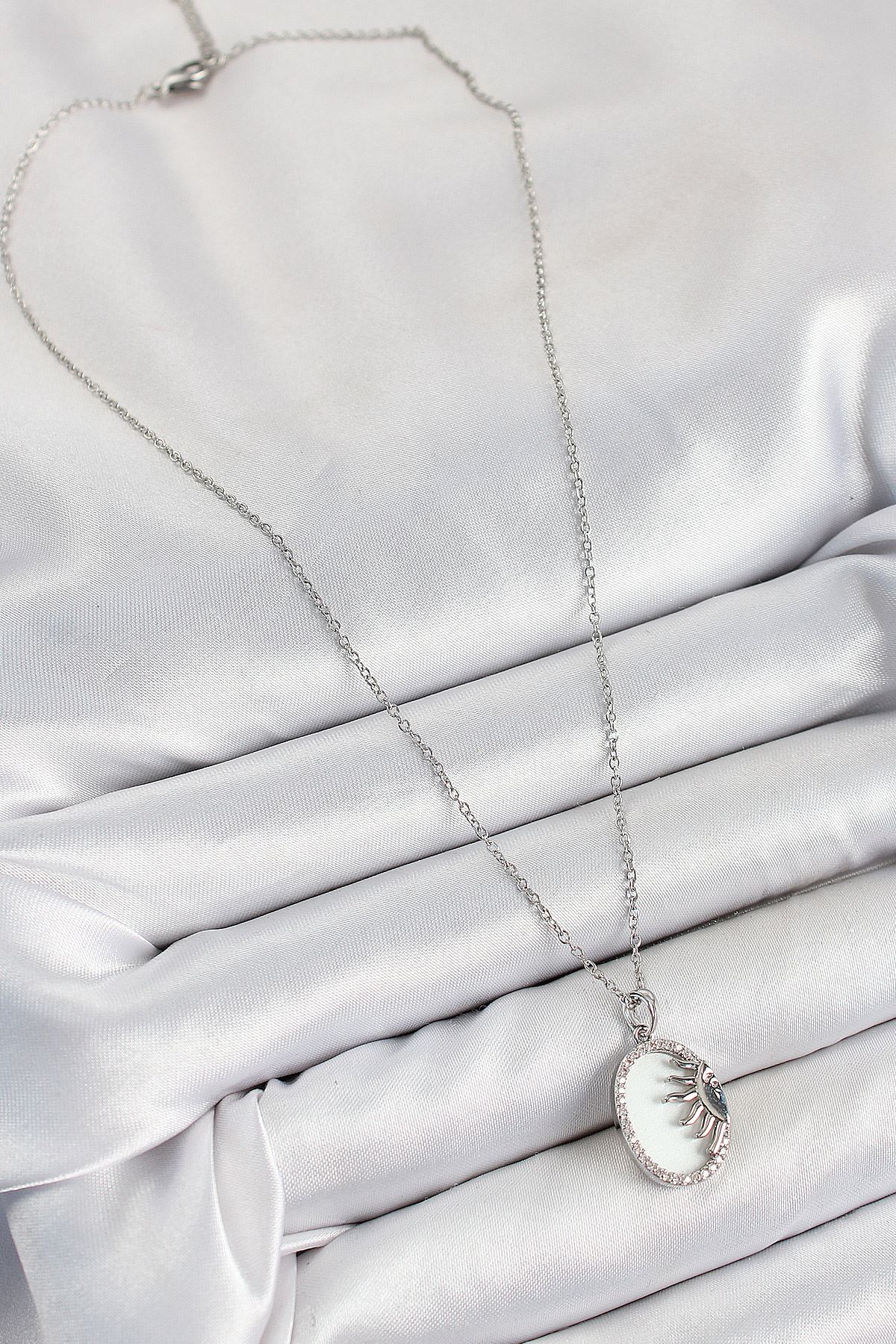 316L Çelik Zirkon Taşlı Yarım Güneş Model Gümüş Renk Kadın Kolye - TJ-BKO10344