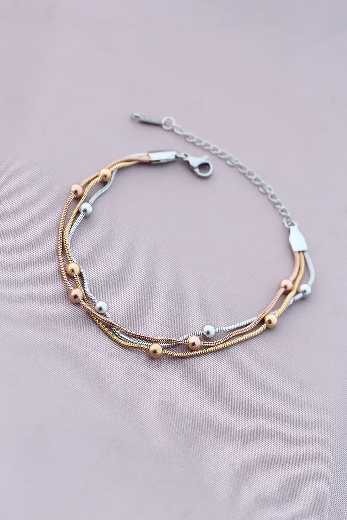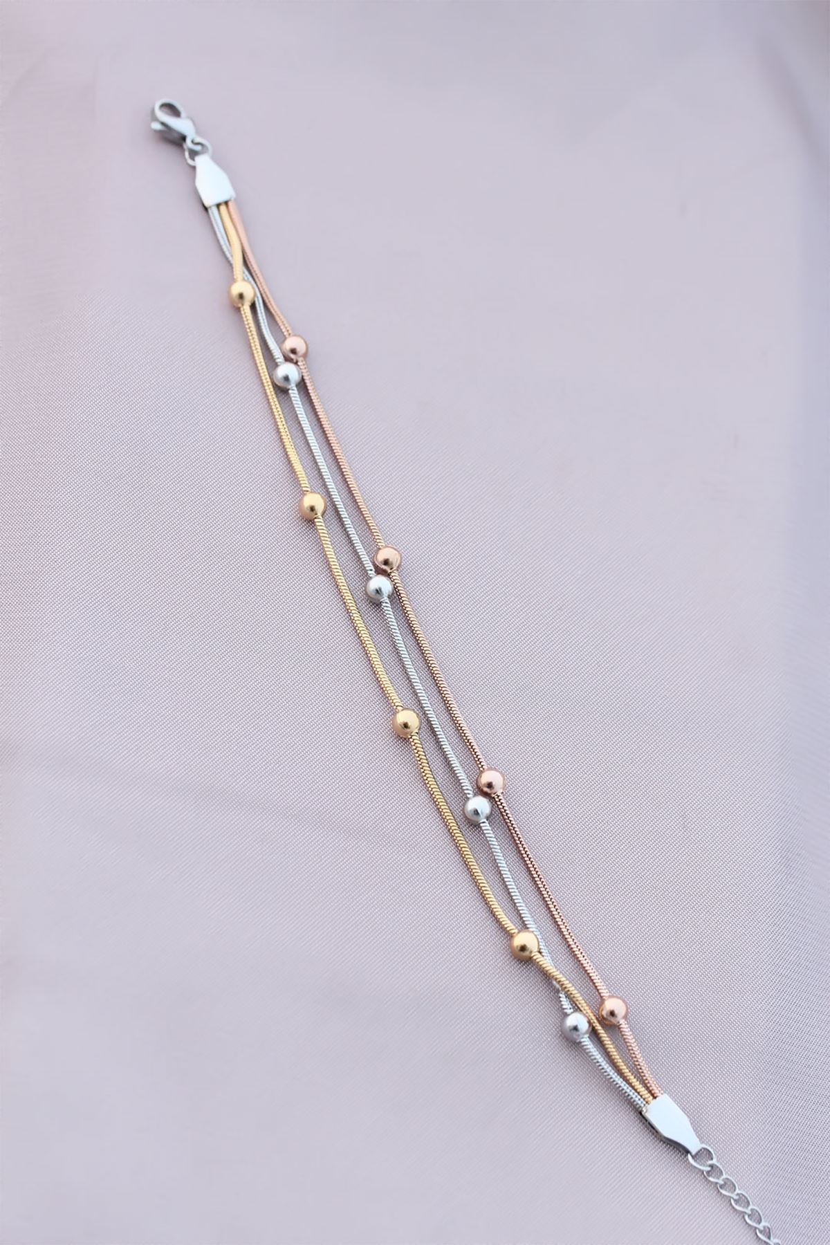 316L Kararmaz Çelik Gümüş Renk Top Zincirli Kadın Bileklik - TJ-BB4172
