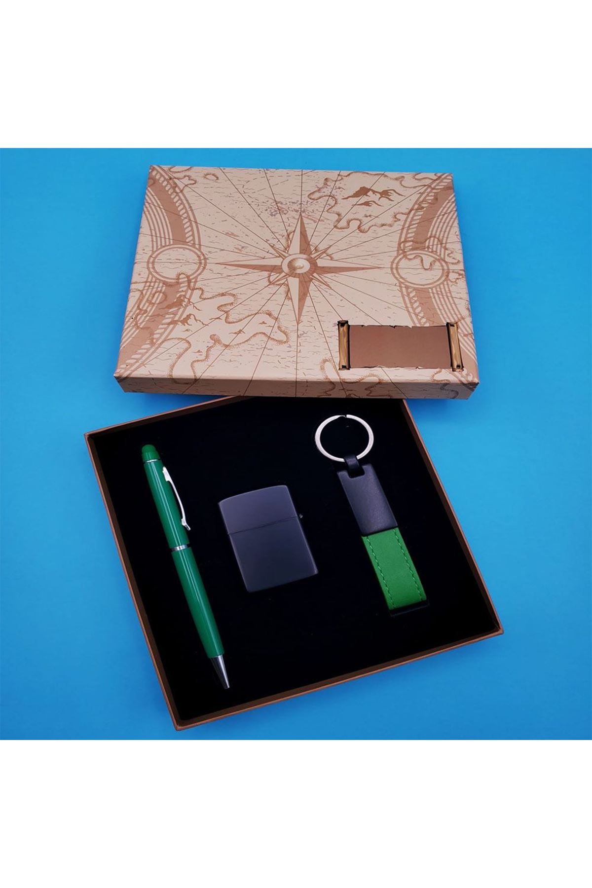 * Kutu Kaliteli Mukavva Malzemeden Üretilmiştir. * Anahtarlık Kaliteli Deri Ve Metal Malzemeden Üretilmiştir.* Kalem Touchpendir.Telefonunuzu Kaleminizle Kullanabilirsiniz.* Çakmak Kaliteli Metal Malzemeden Üretilmiştir.* Siyah Mat Çakmak Zippo Çakmaktır.(Benzinsiz Gönderilmektedir.)* Kalem Metal Malzemeden Üretilmiştir Olup Tükenmezdir.