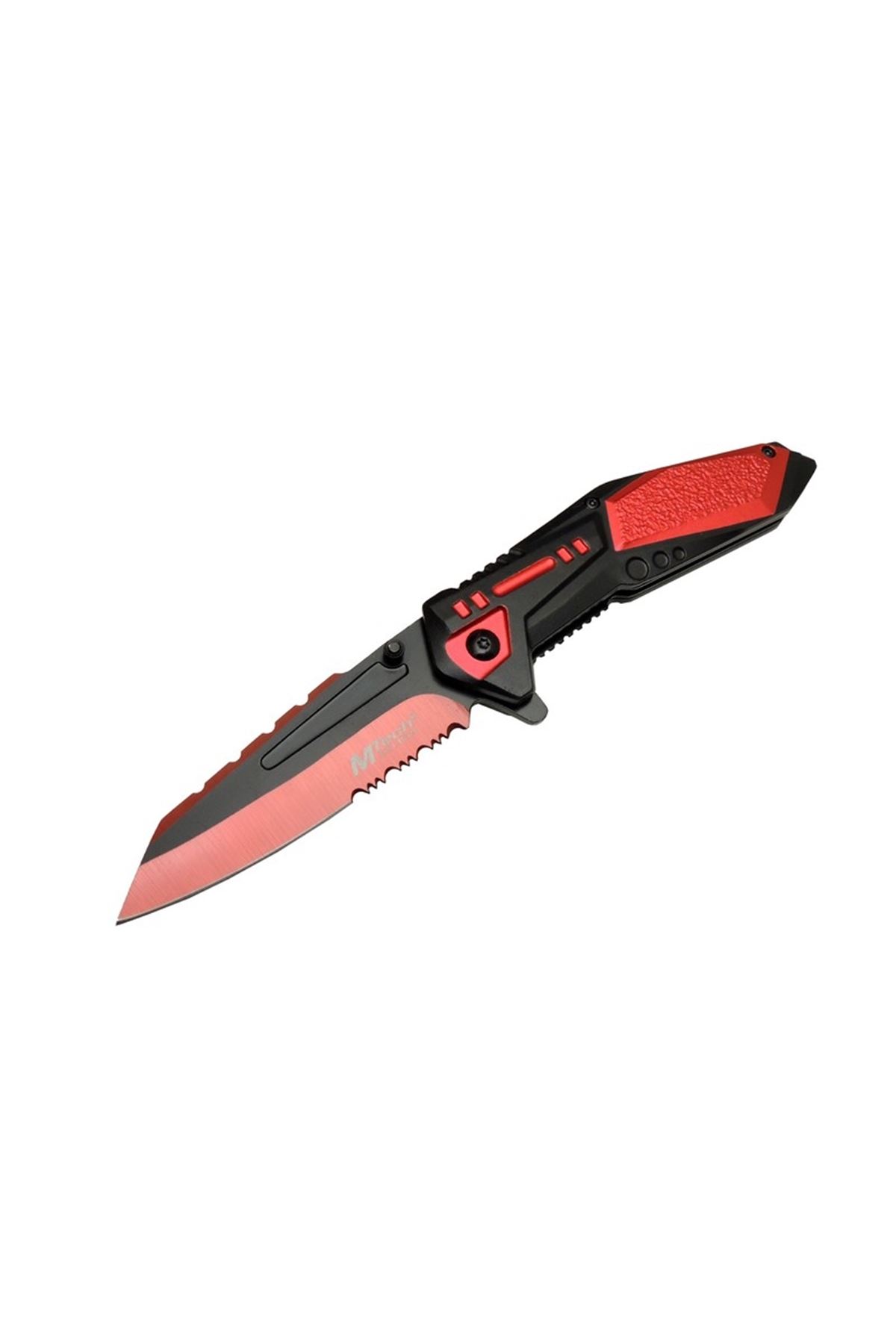 Kırmızı renk ve testere detaylı bıçağıyla dikkat çeker.