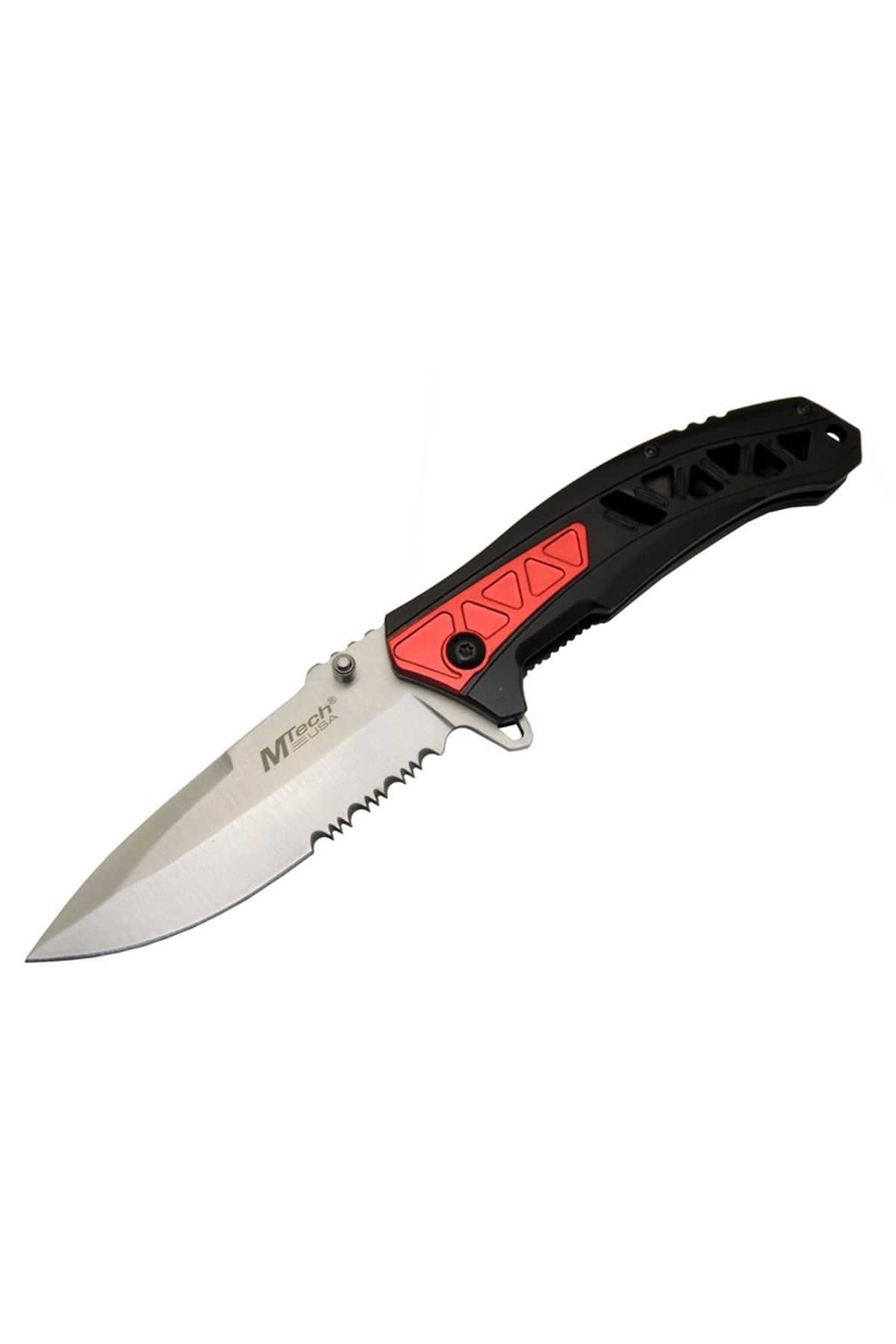 4192 Kırmızı Kamp Çakı 21cm - Yarı Otomatik, Testere Detaylı, Desenli Sap