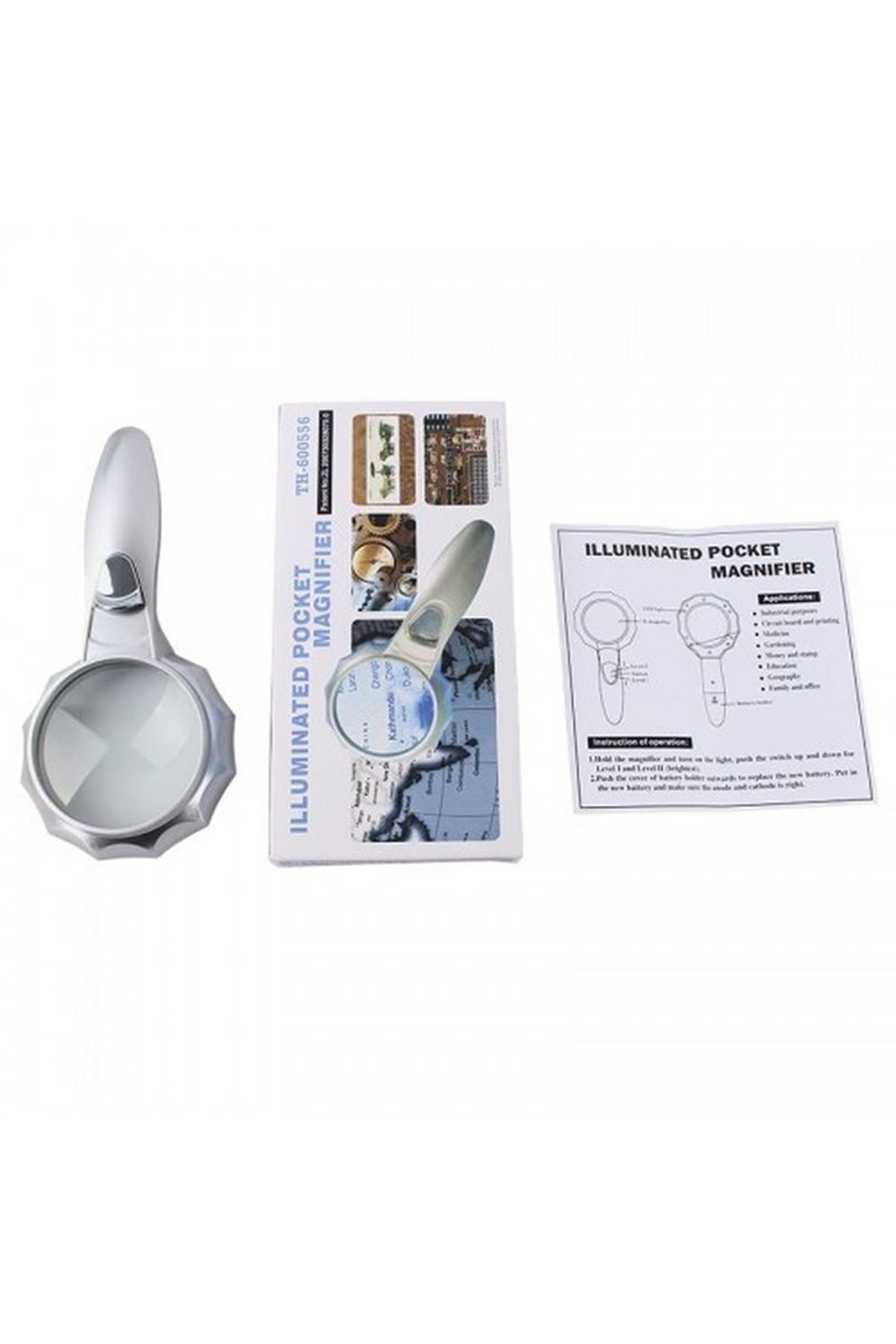 Teknik ÖzelliklerAna Renk: GümüşMalzeme: Çinko Alaşım + Akrilik LensBüyütme: 4xPil: 2 x Aaa Pil (Dahil Değildir)Çap: 70mm/2.75inÜrün Boyutu: 19.59.52 Cm/7.673.74 0.79in (L W H)Ürün Ağırlığı: 119g/4.24 OzPaket Boyutu: 19.5102.8 Cm/7.673.94 1.1in (L W H)Paket Ağırlığı: 148g/5.21 Oz