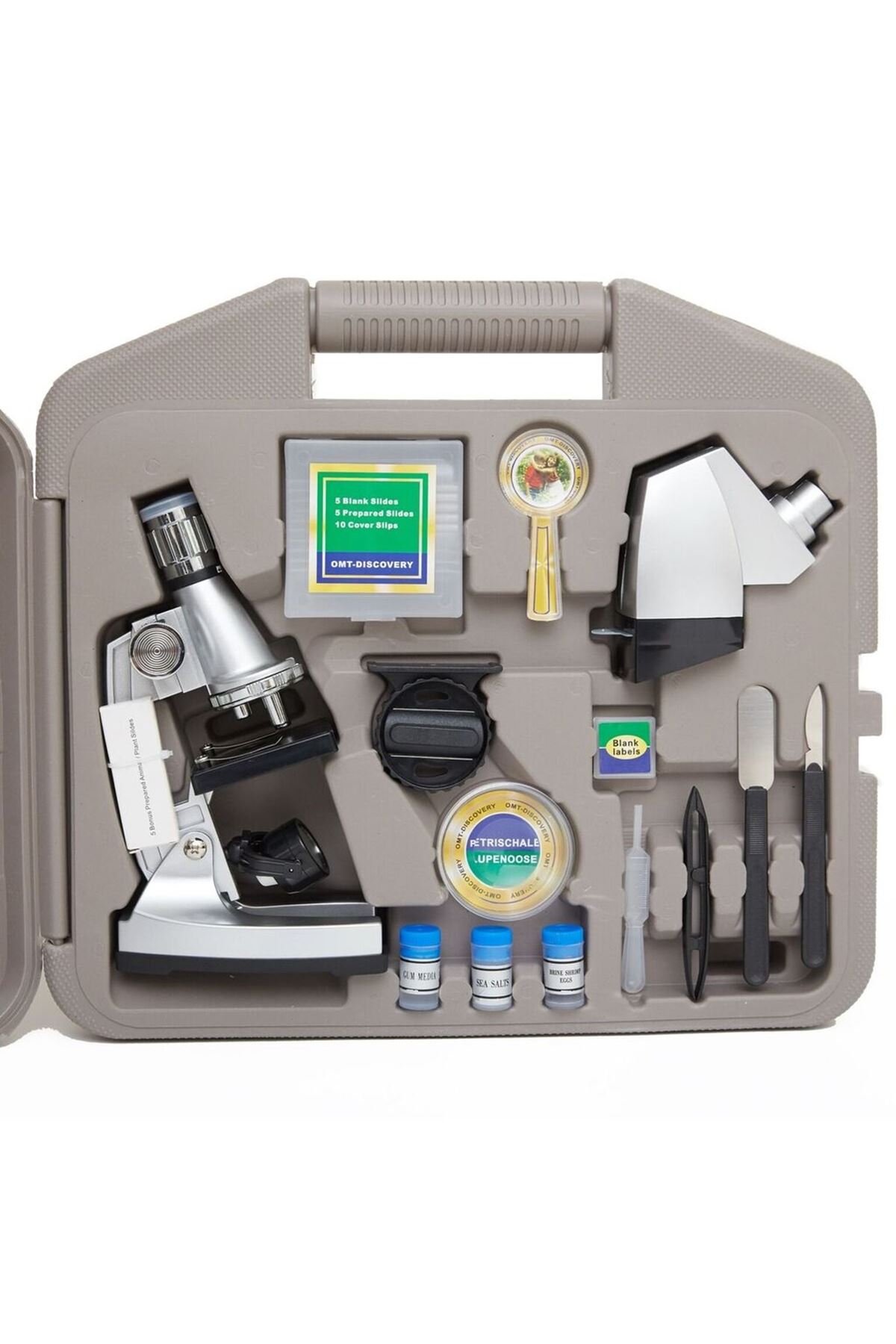 Özellikler:Döner başlıkta güç göstergesiTabla ve tabla kıskaçlarıPürüzsüz mikroskop raf ve pinyon odakOptik cam lensler, 10X-20X mercek ve 10X / 30X / 60X objektif lens, ayarlanabilir odak.Seçilecek 3 objektif lens, max. küçük şeyleri gözlemlemek için 1200X büyütme50X - 1200X büyütmeOptik Cam Mercekler ile Yüksek Hassasiyette GörüntüLED ışık kaynağı olarak alt aydınlatıcı, aynayı yansıtarak lambaya dönerProjektör başlığı ekranda görüntüyü yansıtırMikroskop gövdesi en rahat görüntüleme açılarını seçerek 90 derece eğilebilirKaymaz kauçuk lastik taban ile kullanım esnasında sabit kalırKüçük ya da geniş öğrenci grupları için aynı anda bir örneği görüntüleyebilmeleri için değiştirilebilir projektörKeşif malzemeleri ürüne dahildirMalzeme: ABS plastikÜrün 2 x 1,5V AA pil ile çalışmaktadır (piller dahil değildir)Ürün Ölçüleri (L x W x H):Mercek ile: 12 x 7 x 22 cmProjektör ile: 12 x 7 x 30 cmKutu Ölçüleri: 45 x 34 x 9 cm