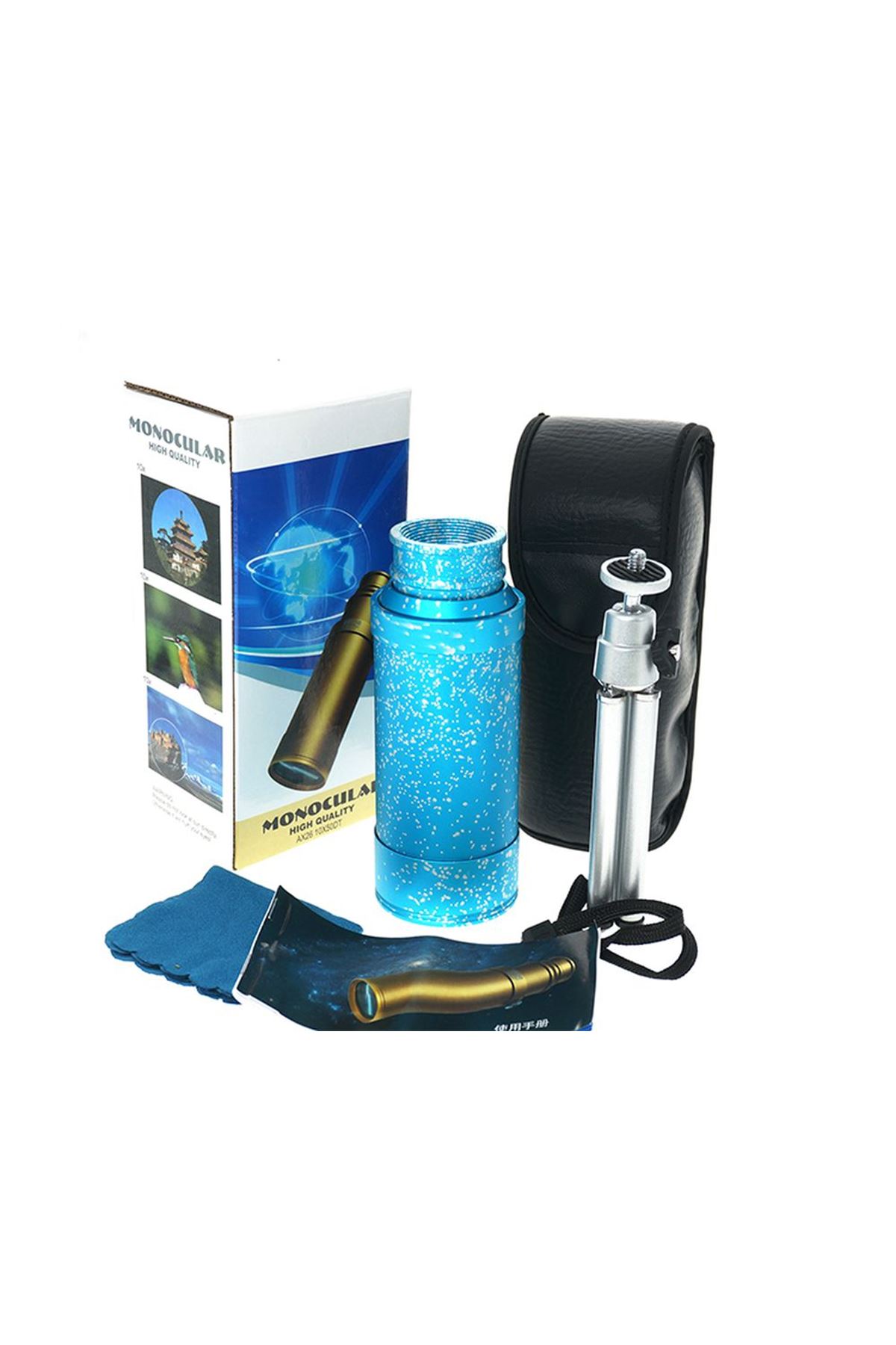 50X50 Panda Metal Gövde Tek Gözle Büyük Mercek Korsan Dürbün Mavi