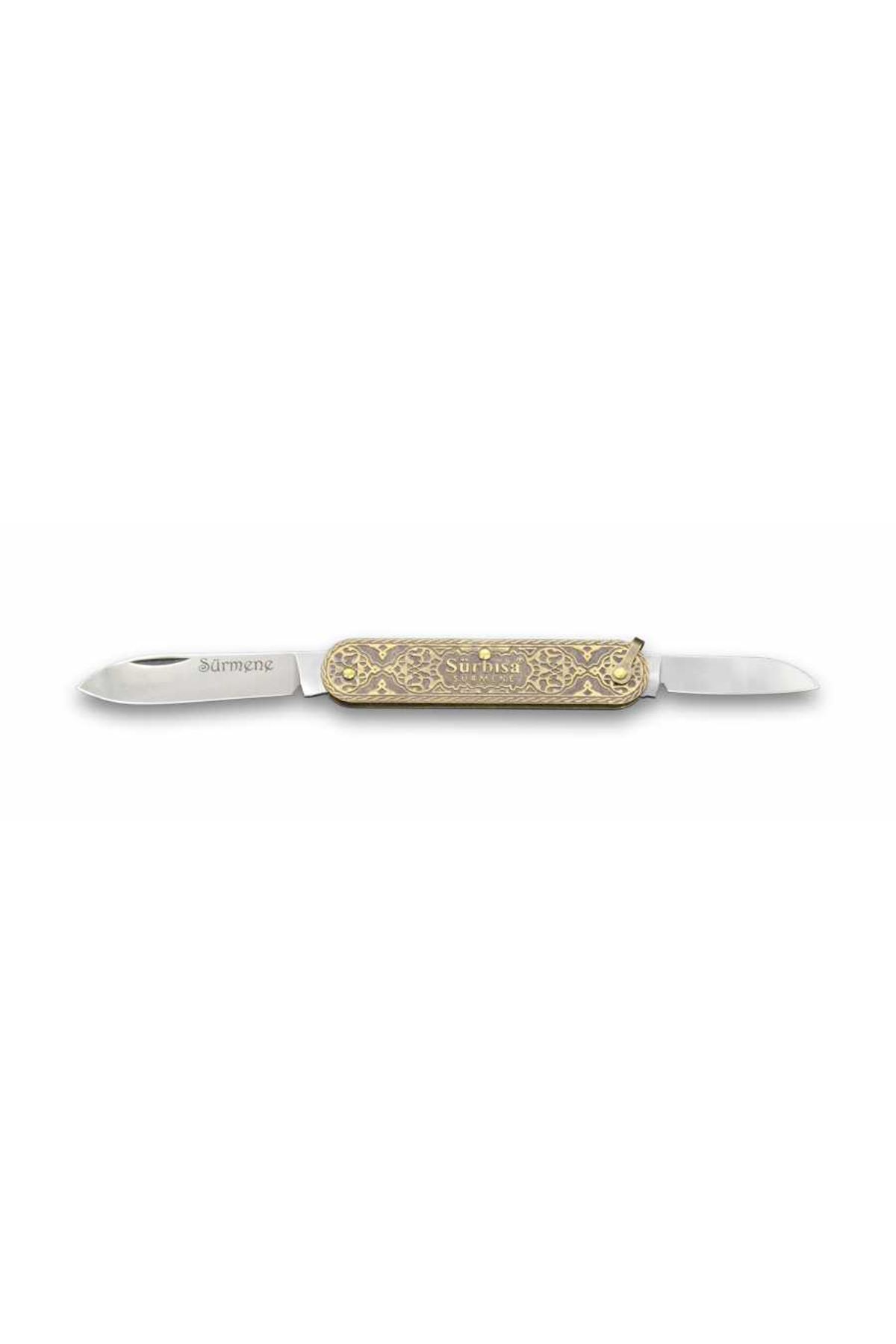 Ürün Tanımı Ürün Adı: Sürbısa 61804 Pirinç İşlemeli Sürmene Çakısı Bıçak Boyutları: 5,5 cm ve 3,5 cm Bıçak Tipi: Çift Bıçaklı Malzeme: Pirinç ve Paslanmaz Çelik Tasarım: Pirinç İşlemeliÖzellikler Tasarım ve Estetik: Pirinç İşlemeli: Çakının kapak kısmında yer alan pirinç işlemeleri, zarif ve klasik bir görünüm kazandırır. Detaylı işçilik, çakıya estetik ve özel bir hava katmaktadır. Kompakt Boyutlar: 5,5 cm ve 3,5 cm boyutlarında çift bıçaklı tasarımı, kullanışlılığı ve taşınabilirliği artırır. Hem büyük hem de küçük bıçak, çeşitli kesme görevleri için uygundur. Malzeme ve Yapı: Bıçak Malzemesi: Bıçaklar paslanmaz çelikten üretilmiştir, bu da onların dayanıklı, keskin ve uzun ömürlü olmasını sağlar. Paslanmaz çelik, bıçakların uzun süre keskin kalmasına ve korozyona karşı direnç göstermesine yardımcı olur. Sap Malzemesi: Çakının sapı, pirinç işlemeli detaylarla zenginleştirilmiş olup, estetik bir görünüm sunar. Ayrıca, ergonomik tasarımı sayesinde rahat bir tutuş sağlar. Fonksiyonellik: Çift Bıçaklı Tasarım: Çakıda bulunan iki bıçak, farklı kesme ihtiyaçlarını karşılamak için kullanışlıdır. Büyük bıçak, genel kesme işlerinde; küçük bıçak ise detaylı ve hassas kesimlerde tercih edilebilir. Kullanım Kolaylığı: Çakının iki bıçaklı yapısı, farklı amaçlara uygun kesme işlemlerini kolaylaştırır. Aynı zamanda kompakt ve hafif yapısı, taşımasını ve kullanmasını kolaylaştırır. Kullanım ve Bakım: Kullanım: Çakıyı çeşitli kesme işlerinde, kamp ve doğa yürüyüşlerinde, günlük kullanımda ve diğer birçok alanda kullanabilirsiniz. Bıçakların keskinliği, kullanıcıya verimli bir performans sunar. Bakım: Paslanmaz çelik bıçakların düzenli olarak temizlenmesi ve kuru tutulması önerilir. Pirinç işlemeli kapak kısmının da temizlenmesi, estetik görünümünün korunmasına yardımcı olur. Avantajlar: Estetik ve Şıklık: Pirinç işlemeli tasarımı, çakıya geleneksel ve zarif bir görünüm kazandırır. Özellikle koleksiyonluk veya hediye olarak değerlendirilebilecek estetik bir üründür. Çift Bıçaklı Kullanışlılık: Farklı kesme ihtiyaçları için iki bıçak seçeneği sunar. Bu, çakının çok yönlü kullanımını sağlar ve çeşitli görevlerde işlevselliğini artırır. Dayanıklılık: Paslanmaz çelik bıçaklar ve kaliteli pirinç işçilik, çakının uzun ömürlü ve dayanıklı olmasını sağlar. Özetle: Sürbısa 61804 Pirinç İşlemeli Sürmene Çakısı, 5,5 cm ve 3,5 cm boyutlarındaki çift bıçaklı tasarımıyla çok yönlü bir kullanım sunar. Pirinç işlemeli estetik detaylar, çakının zarif ve özel bir görünüm kazanmasını sağlar. Paslanmaz çelik bıçaklar, uzun süre keskin kalırken dayanıklılığı artırır. Hem pratik hem de şık bir kullanım arayanlar için ideal bir tercihtir.