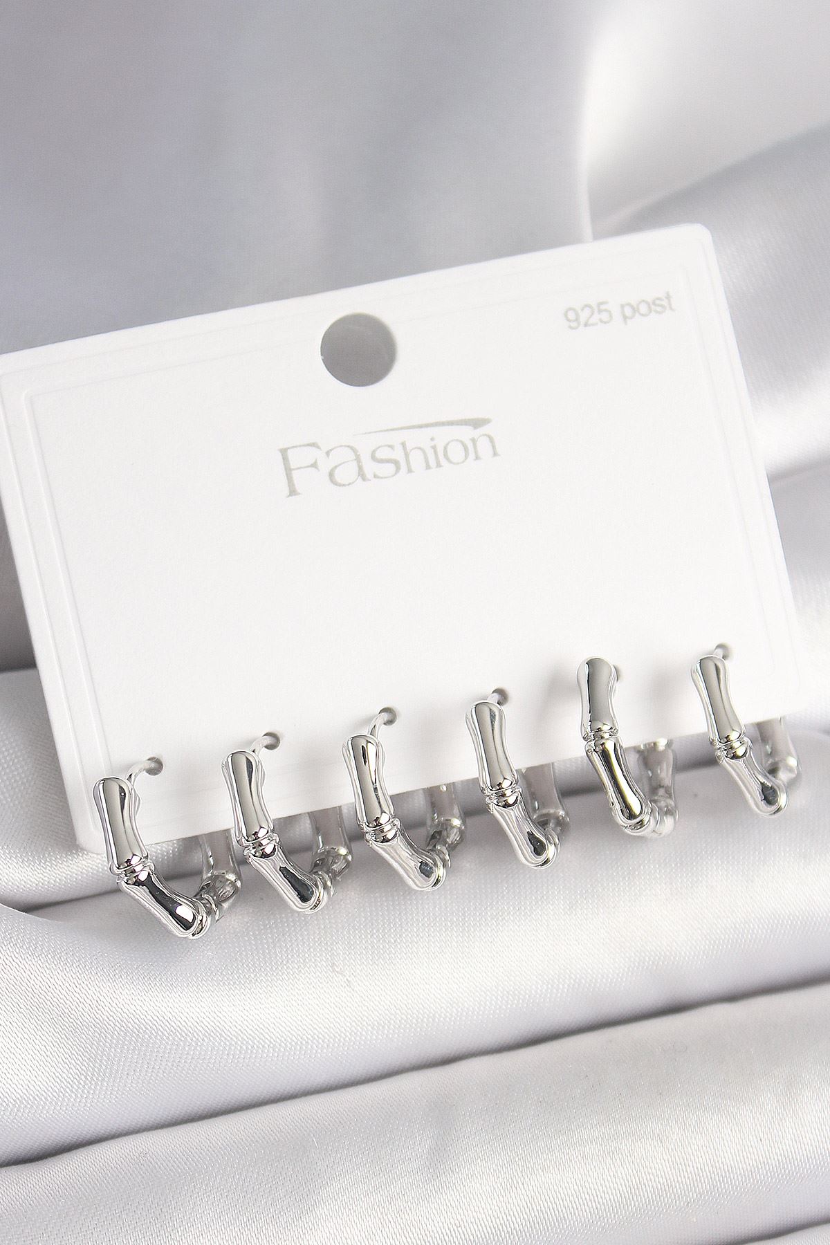 925 Ayar Gümüş Çivi Pirinç Gümüş Renk Bambu Halka Model Kadın Küpe Seti - TJ-BKP10408