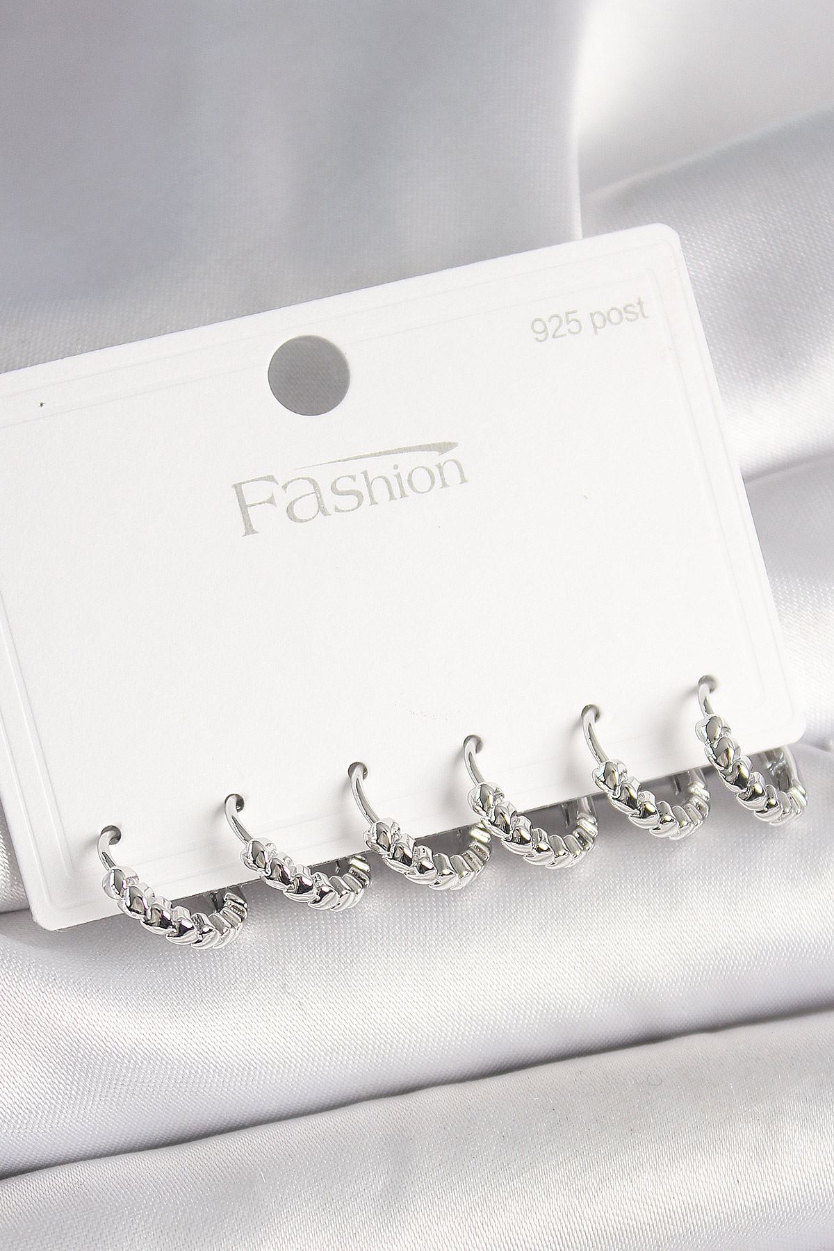 925 Ayar Gümüş Çivi Pirinç Gümüş Renk Kalp İşlemeli Halka Model Kadın Küpe Seti - TJ-BKP10412