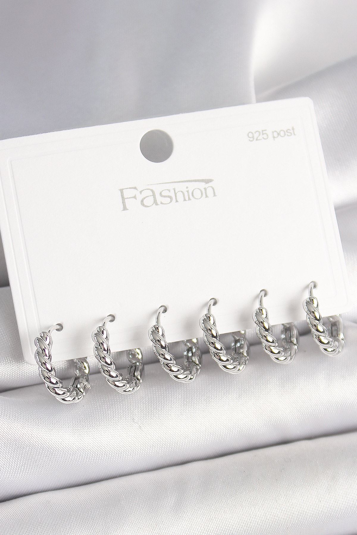 925 Ayar Gümüş Çivi Pirinç Gümüş Renk Sarmal Halka Model Kadın Küpe Seti - TJ-BKP10416