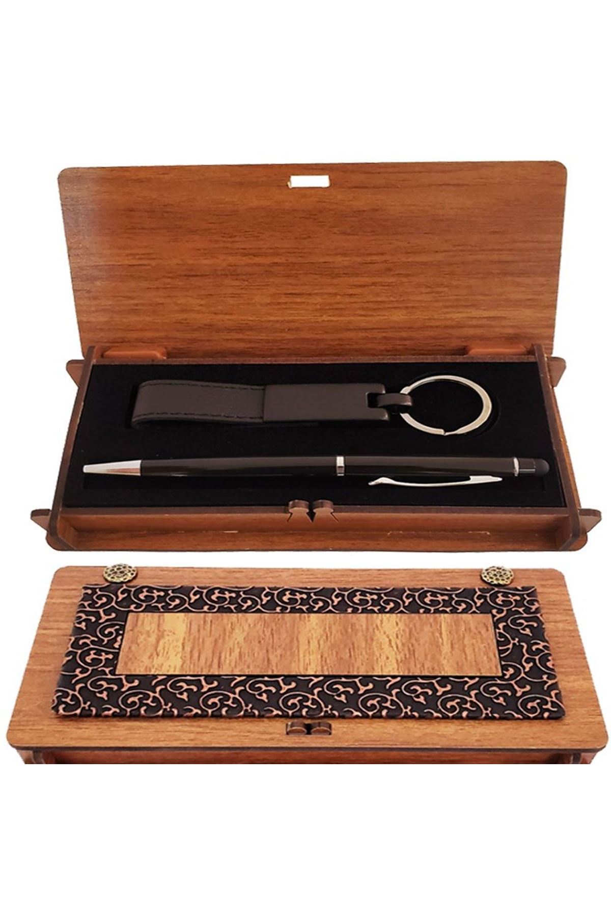 Ahşap Kutulu Siyah Kalem ve Anahtarlık