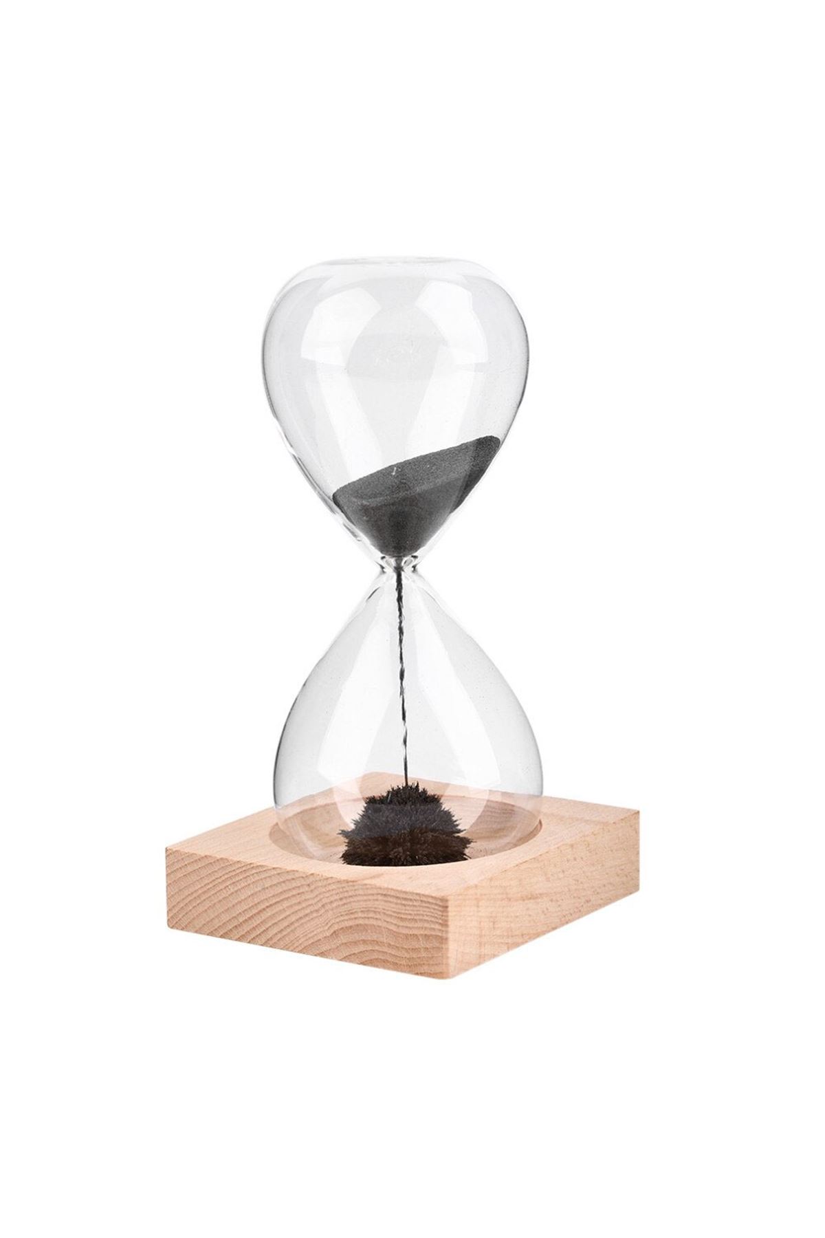 Bu Ilginç Ürün Tamamen Cam Malzemeden Üretilmiştir.Alt Kısmı Ise Ahşap Malzemeden Üretilmiştir.Ahşabın Üzerine Istediğiniz Şekilde Yazı Yazabilirsiniz.Alt Kısmında Bulunan Mıknatıs Ve Kumun Mıknatısal Özelliği Sayesinde Kum Aşağıya Ilginç Bir Şekilde Akmaktadır.