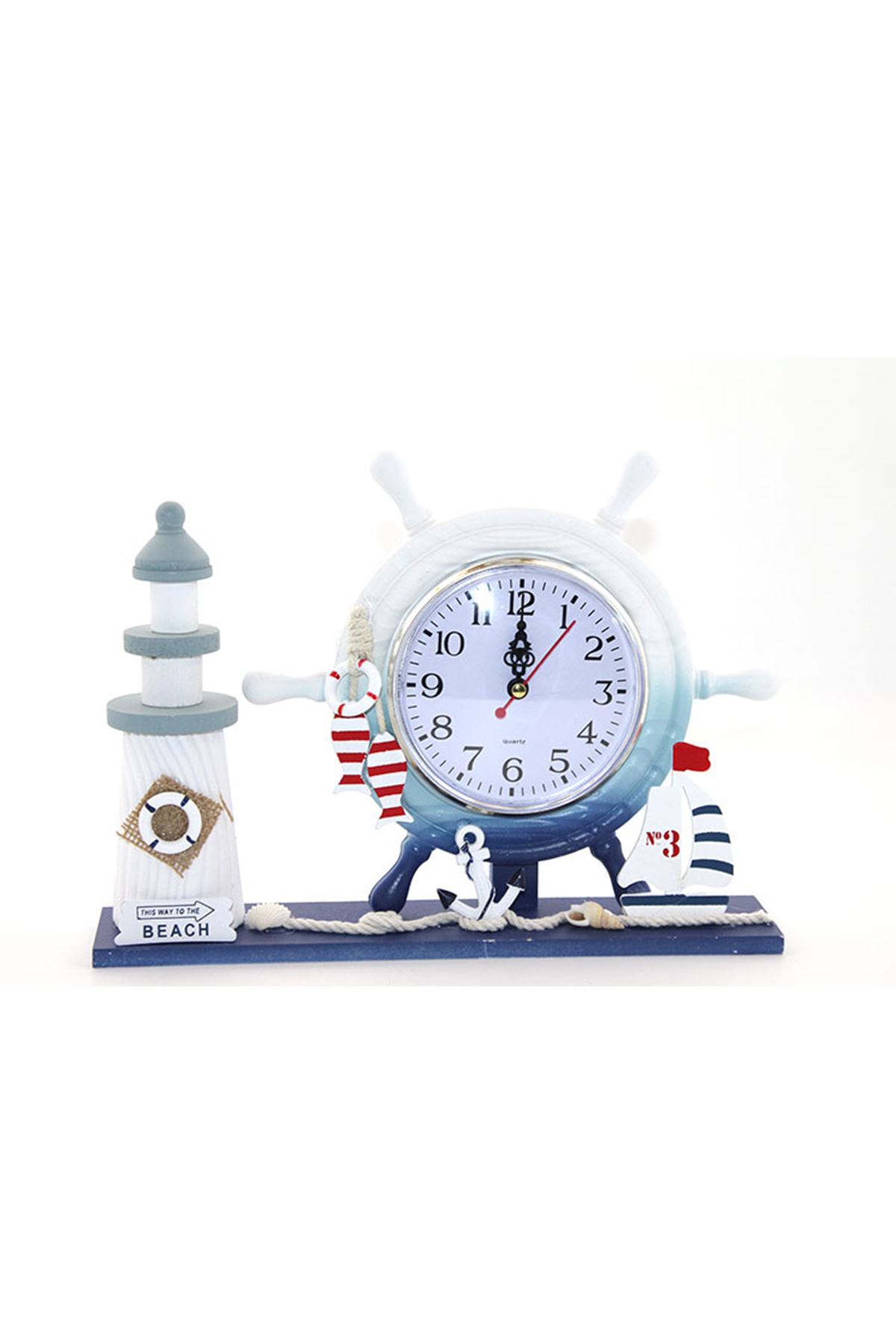 Ahşap Marin Deniz Feneri Dümenli Saat