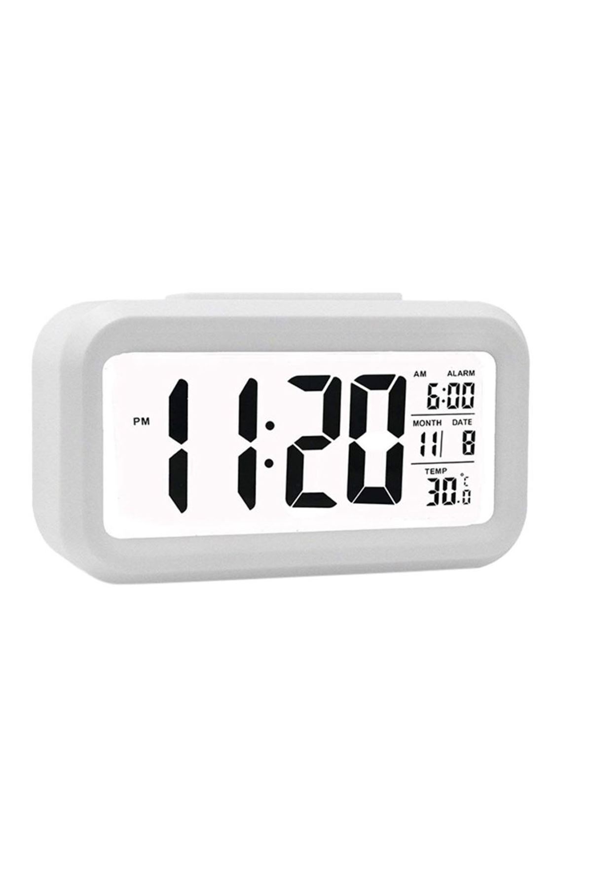 Akıllı Dijital Masa Saati Alarmlı Karanlık Sensörlü Fotoselli Beyaz