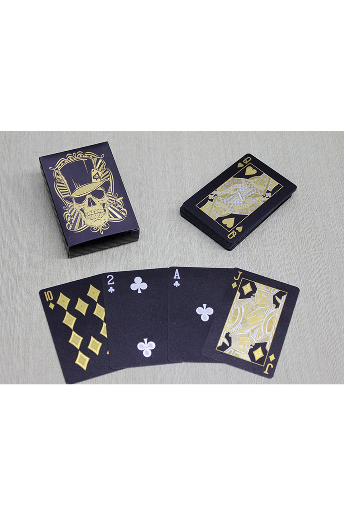 Altın Kurukafa Tasarımlı Siyah İskambil Oyun Kartı