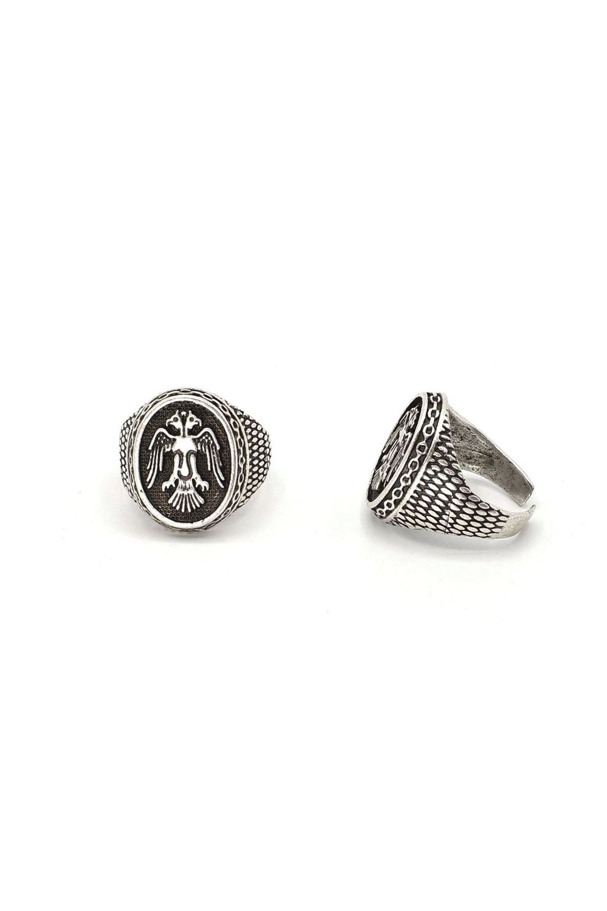 Antik Gümüş Kaplama Selçuklu Arması Ayarlanabilir Yüzük