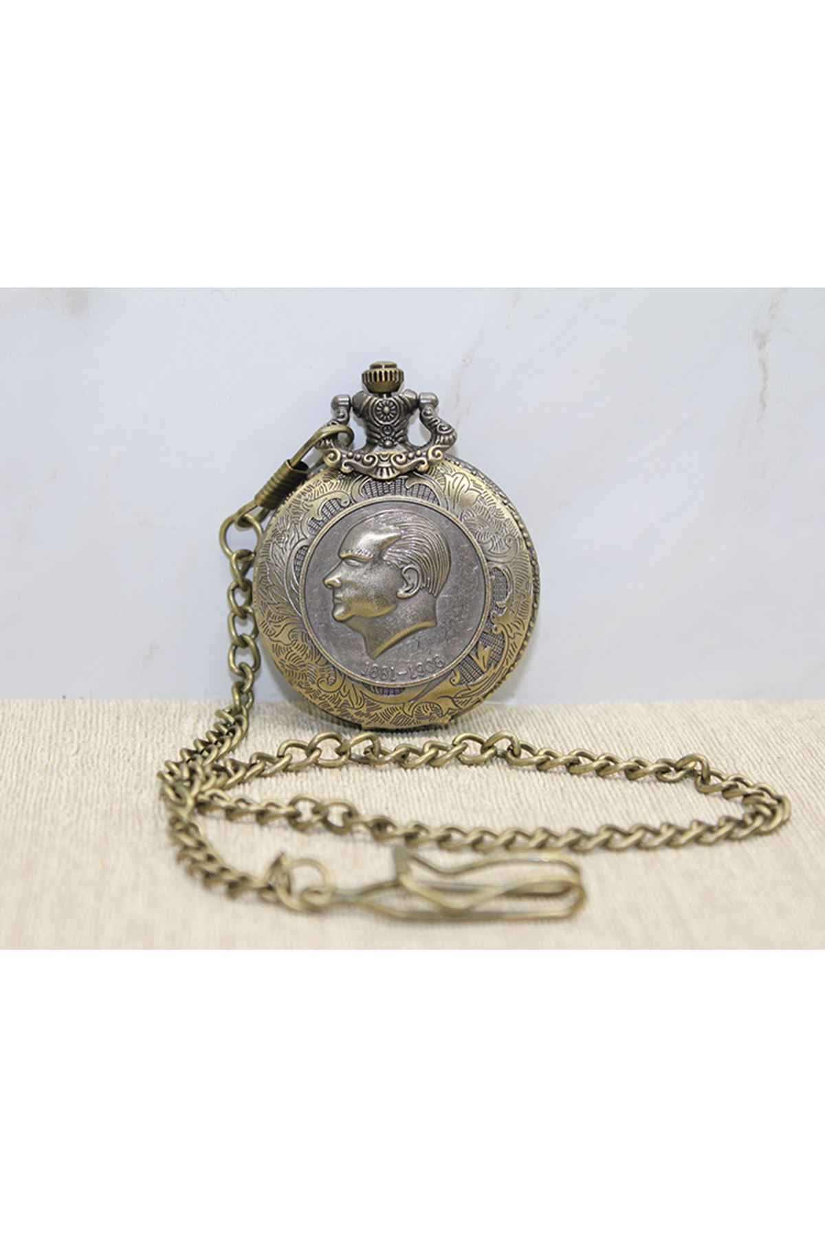 ATATÜRK TASARIMLI KÖSTEKLİ SAATÜrün ÖzellikleriAtatürk tasarımlı köstekli saat, nostaljik ve anlamlı tasarımıyla dikkat çeken özel bir aksesuardır. Bronz kaplama metal gövdesi, Atatürk silueti detaylarıyla zarif bir görünüm sunar. Açılır kapak mekanizması sayesinde saat kadranı kolayca görülebilir ve kullanımı pratiktir. Koleksiyoncular, tarihî ve anlamlı aksesuarları sevenler için mükemmel bir tercih olup, şık bir hediye alternatifi olarak da değerlendirilebilir.Paket İçeriği1 Adet Atatürk Tasarımlı Köstekli Saat
