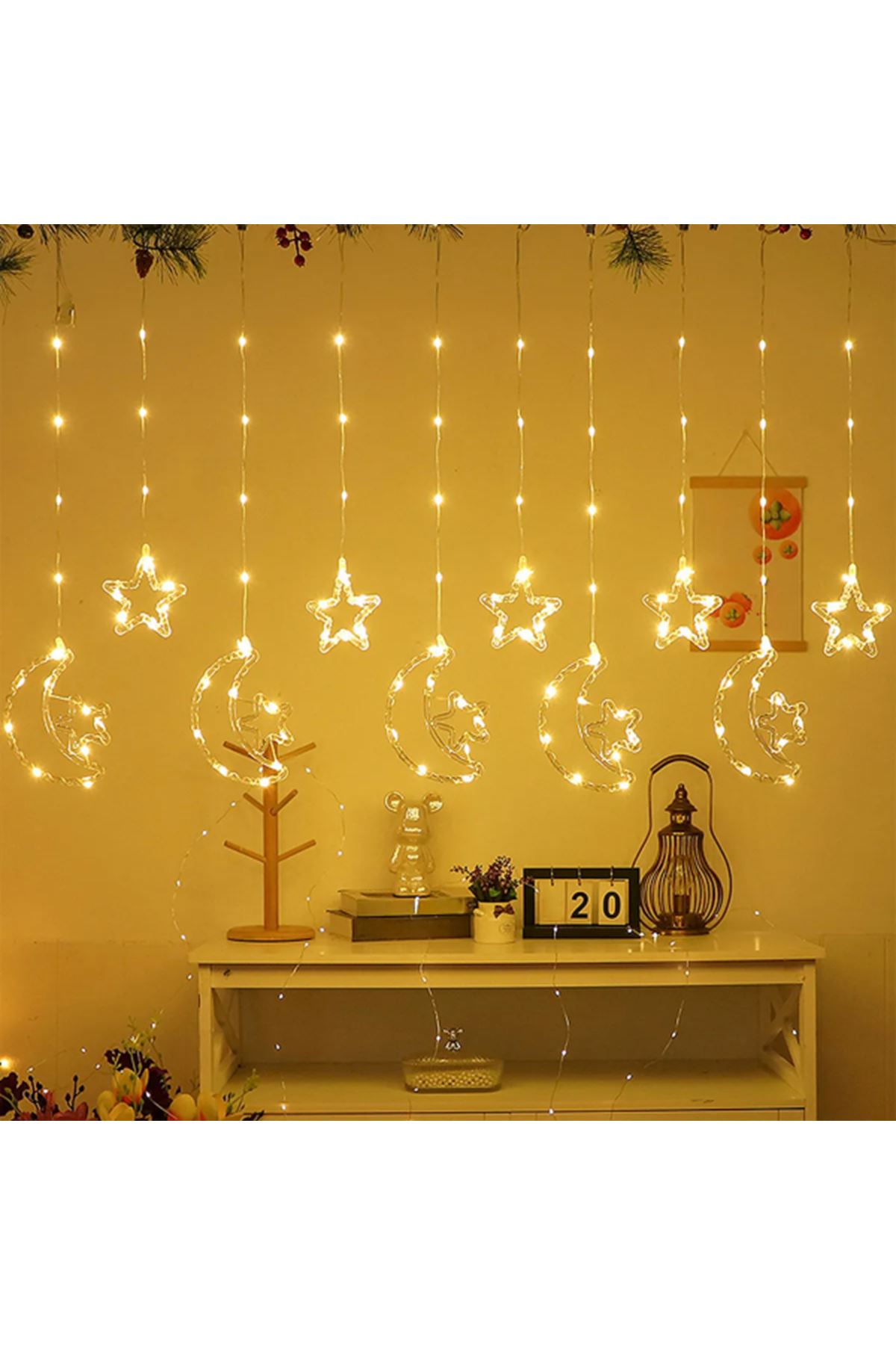 AY YILDIZ PERDE LED 10 SAÇAKLI Ürün Özellikleri Ay Yıldız Perde LED ışık sistemi, sıcak ışığıyla bulunduğu ortama anında romantik ve etkileyici bir ambiyans kazandırmak üzere tasarlanmıştır. Toplam 10 saçaktan oluşan bu modelde 5 ay ve 5 yıldız figürü yan yana dizilerek dekorasyonunuza zarif ve şık bir görünüm sağlar. Sıcak sarı LED aydınlatması; pencere, perde, duvar, vitrin, balkon ve özel gün süslemeleri için ideal bir kullanım sunar. Fişli ve eklemeli yapısı sayesinde birden fazla set kolayca birbirine bağlanabilir ve daha geniş alanlarda ışıklandırma yapılabilir. 8 fonksiyonlu kontrol sistemi ile sabit ışık, yanıp sönme, hızlı geçiş, dalga efekti gibi birçok mod arasından dilediğiniz seçilerek ortamın atmosferi tamamen kişiselleştirilebilir. İç ve dış mekâna uygun dayanıklı tasarımıyla yılbaşı, parti, doğum günü süslemeleri ve günlük dekorasyon için çok yönlü bir aydınlatma çözümüdür. Paket İçeriği 1 Adet Ay Yıldız Perde LED