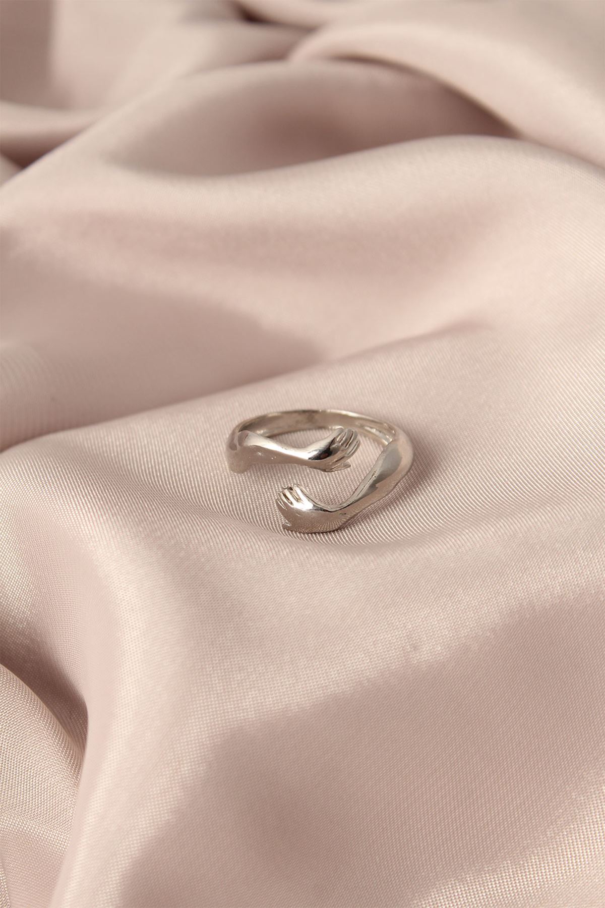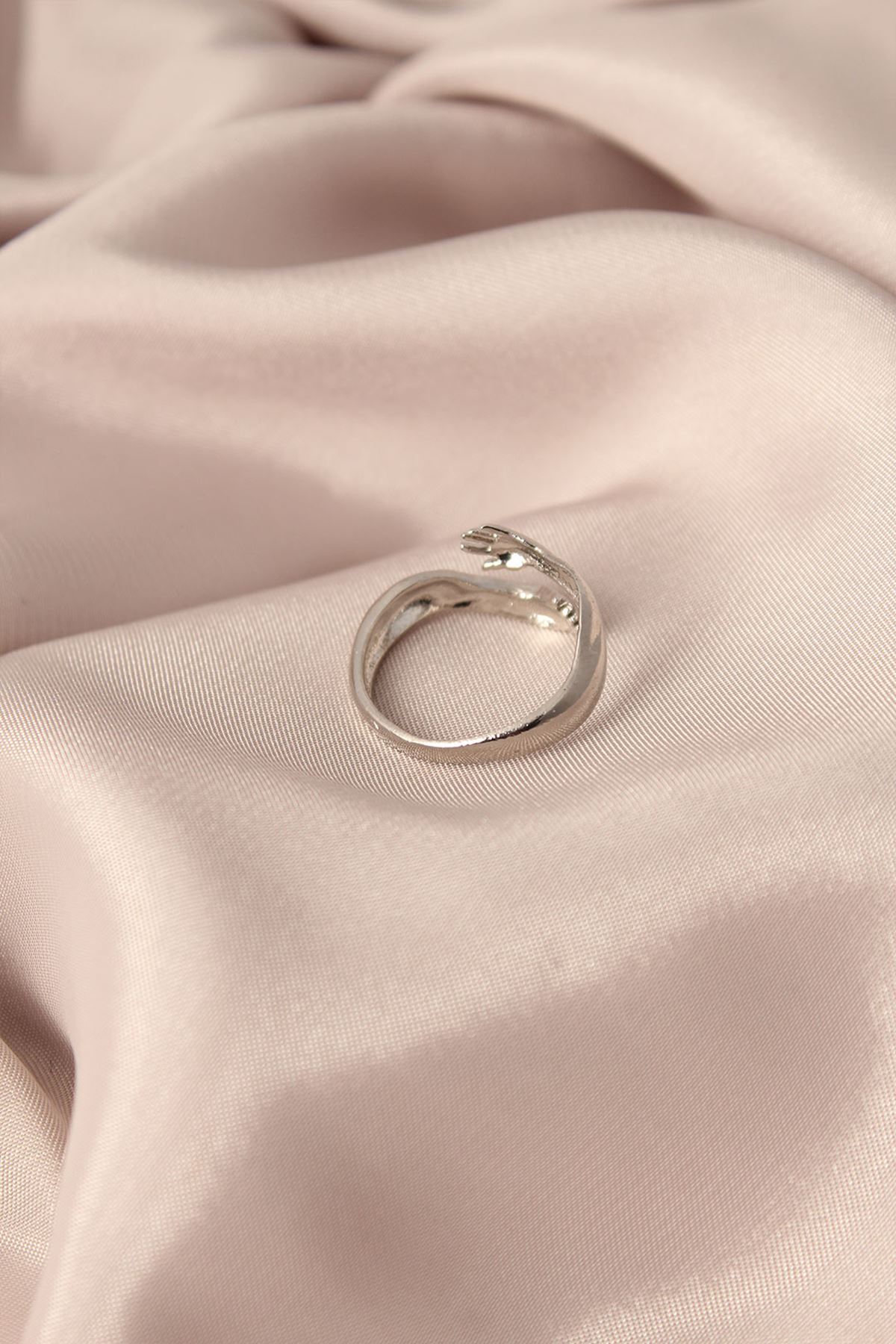 Ayarlamalı Gümüş Renk Metal Sarılan Eller Model Kadın Yüzük - TJ-BYK2135