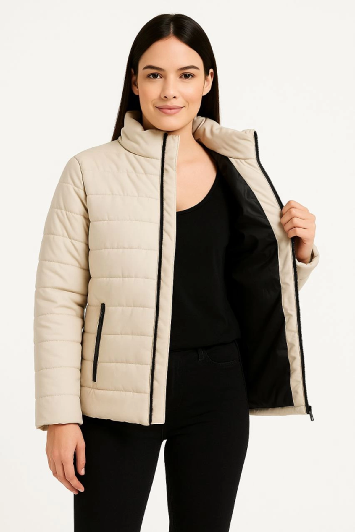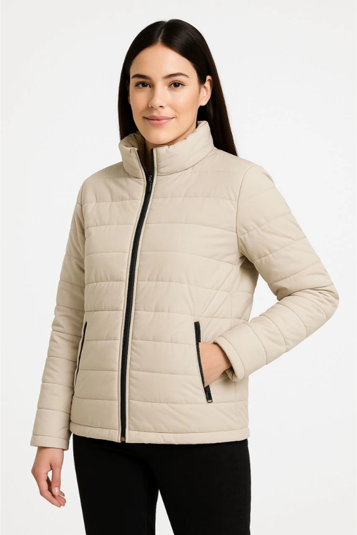 Bomber Mont Ceket – Su İtici Kumaş, Kapitone Astarlı, Fermuarlı, Kışlık - Bej
