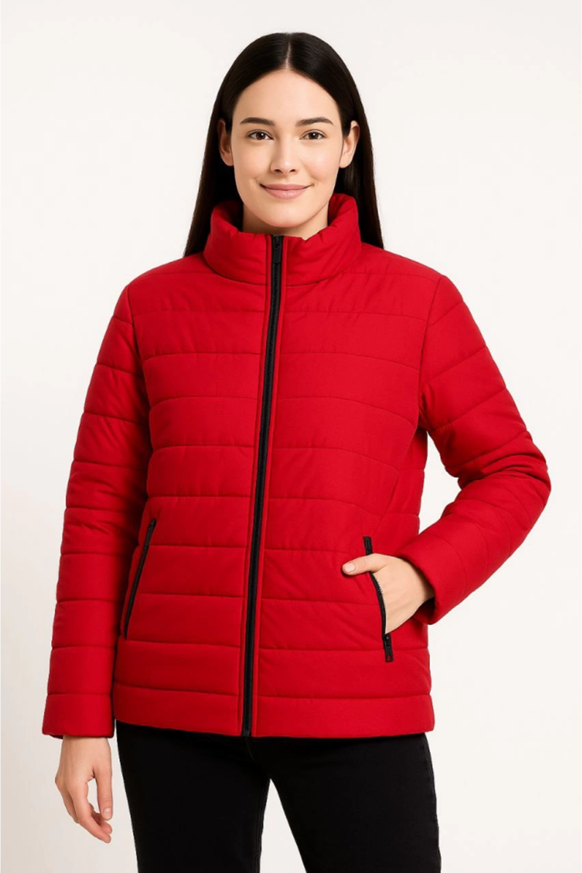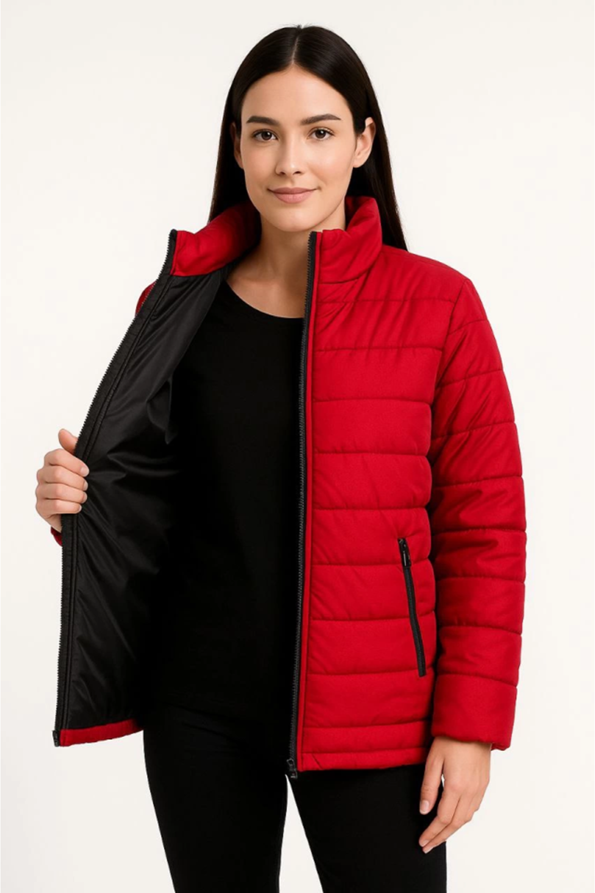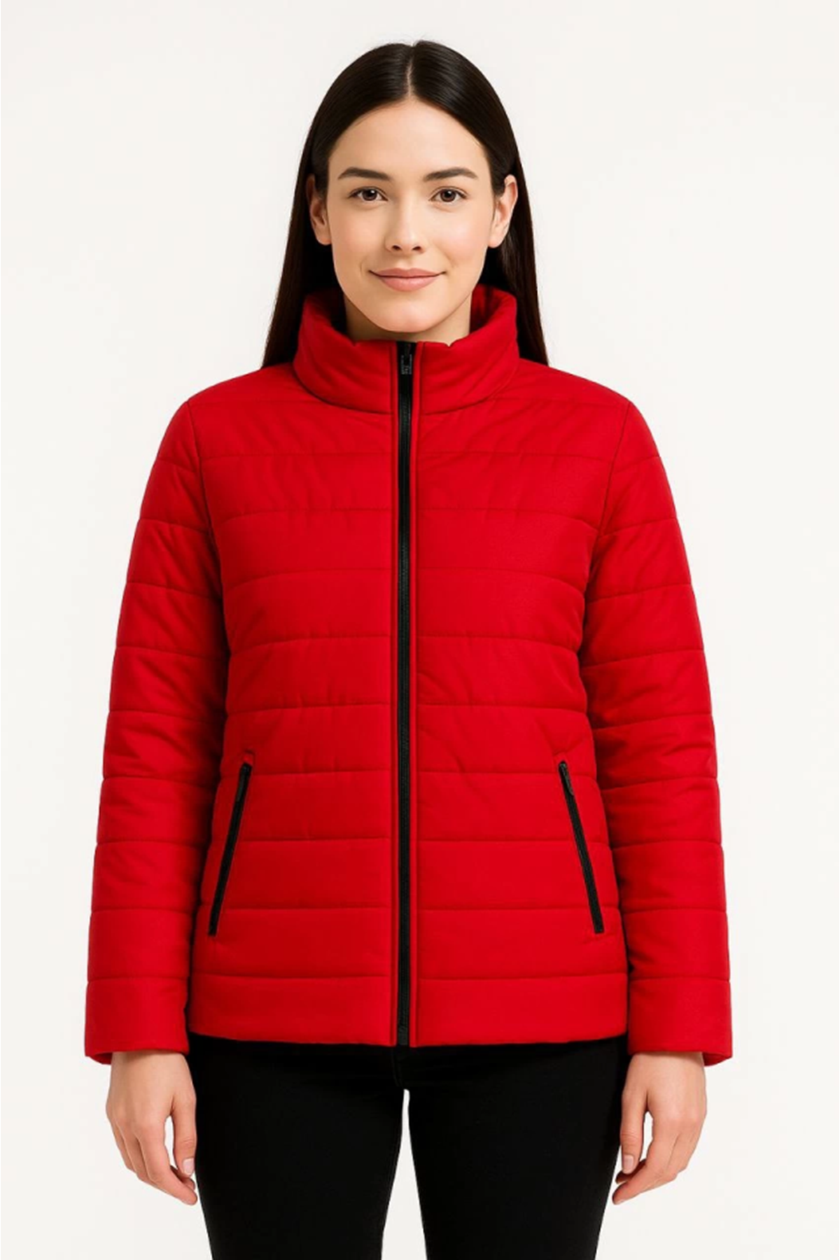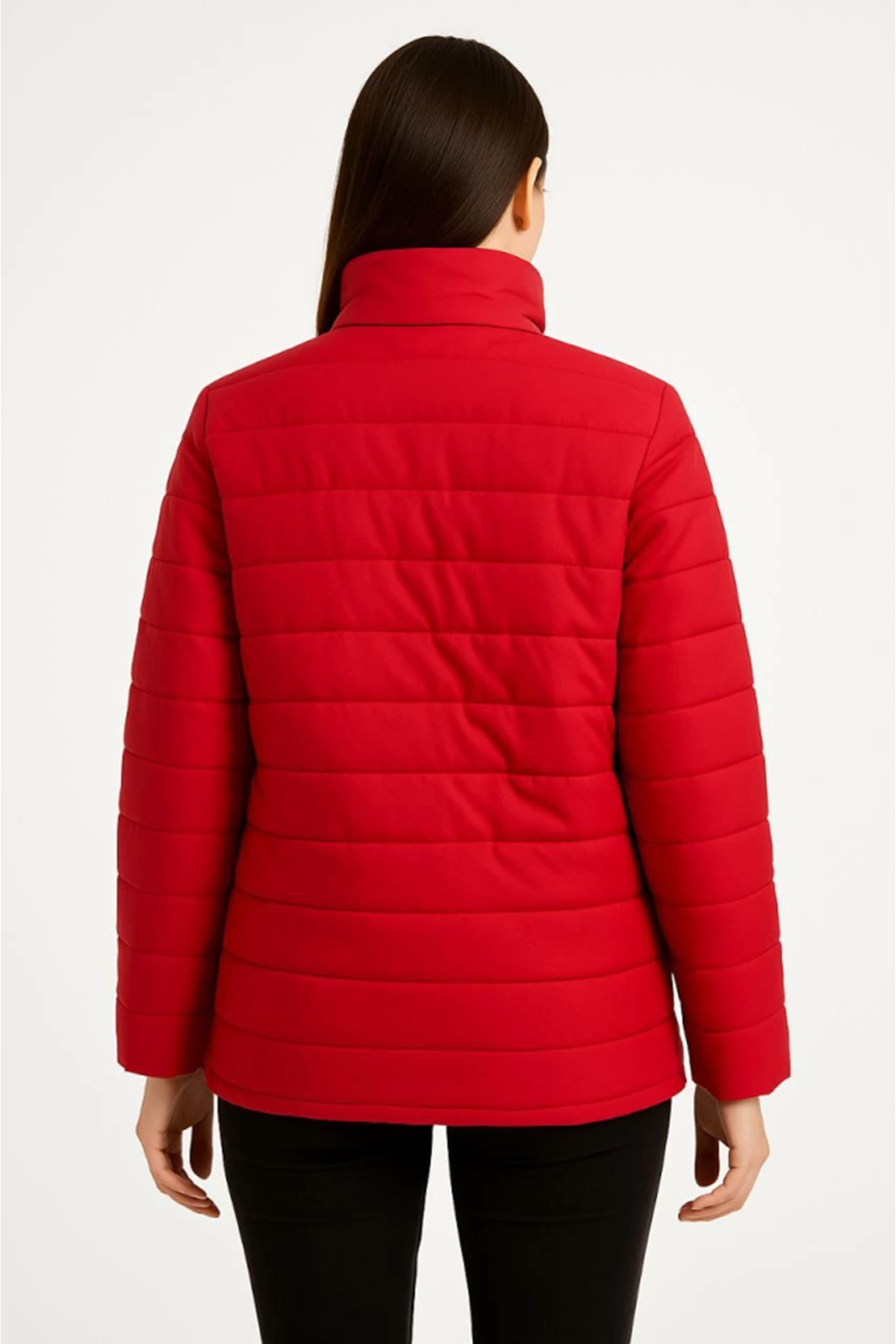 Bomber Mont Ceket – Su İtici Kumaş, Kapitone Astarlı, Fermuarlı, Kışlık - Kırmızı