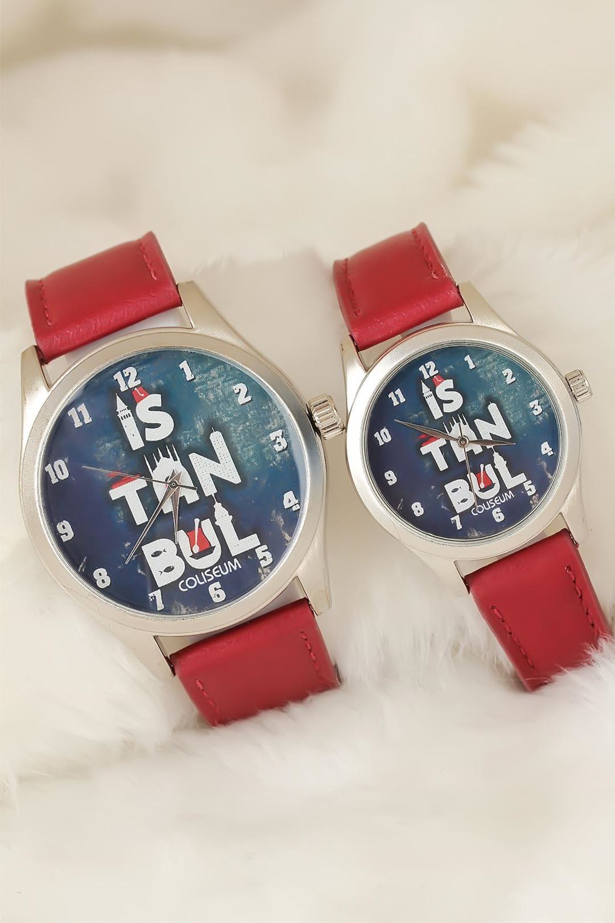 Bordo Renk Deri Kordonlu İstanbul Tasarımlı Sevgili Saatleri - TJ-SGK1367