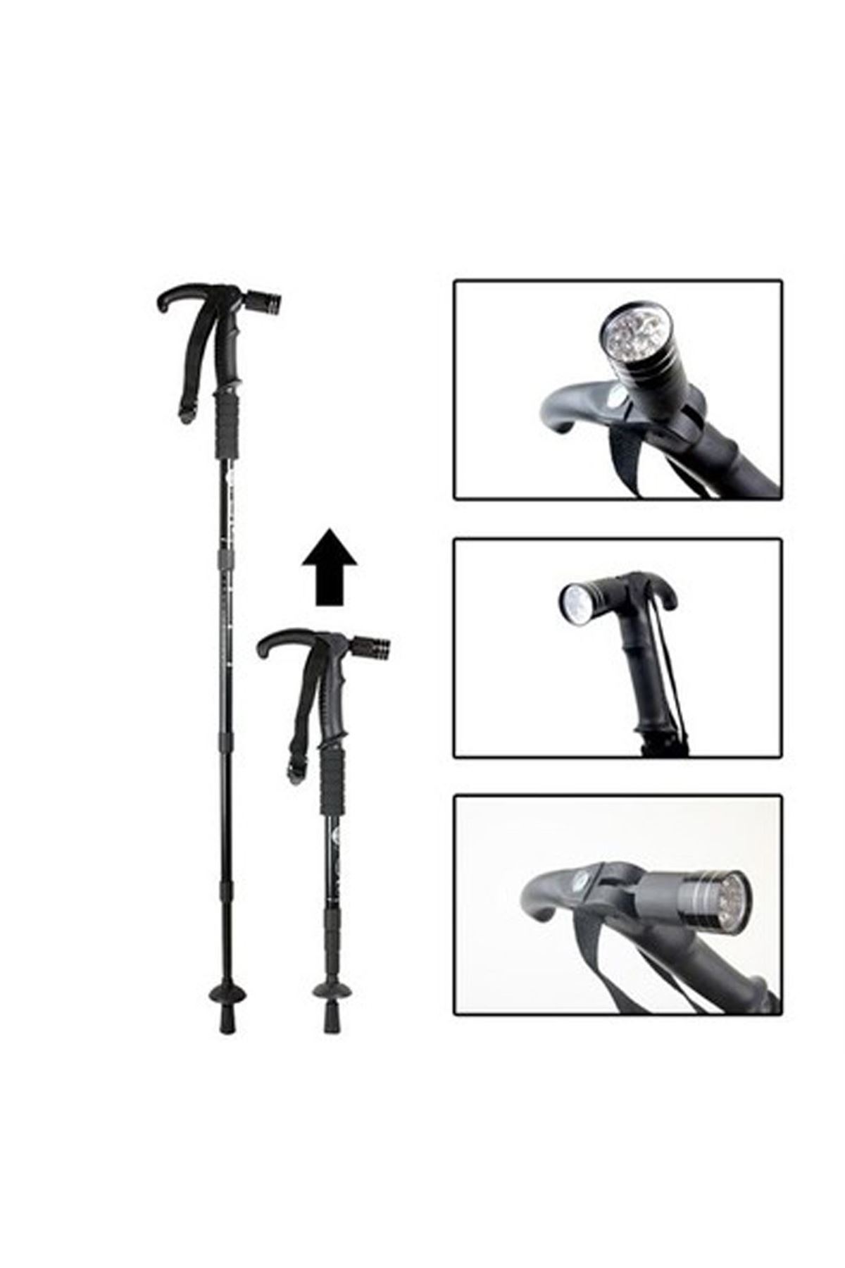 Boya Göre Teleskopik Ayarlı(62-110 Cm Küçültüp Büyütülebilir) 9 Beyaz Ledli Parlak FenerliPusulalı AmortisörlüKar İçin Özel Aparatlı Bilek Kayışlı