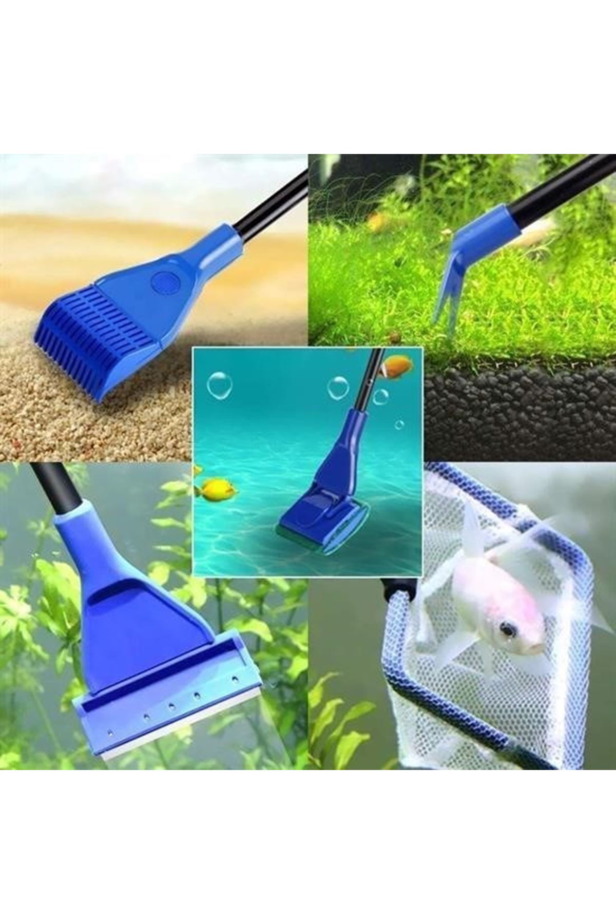 Akvaryum temizleme seti içerisindeki beş aksesuar; balık ağı, kum küreği,yosun fırçası, su otu klipsi ve akvaryum fırçası balık tankının bakım ve temizliğini kolaylaştırır