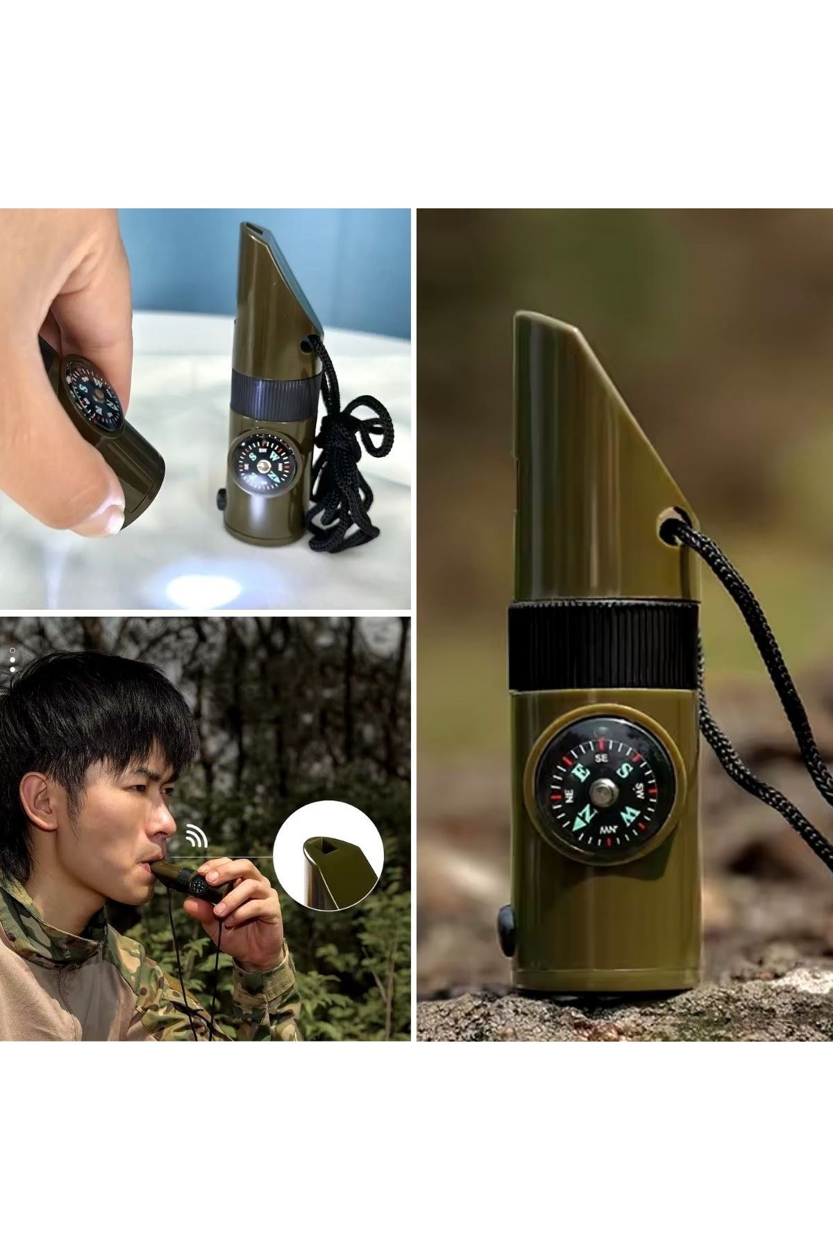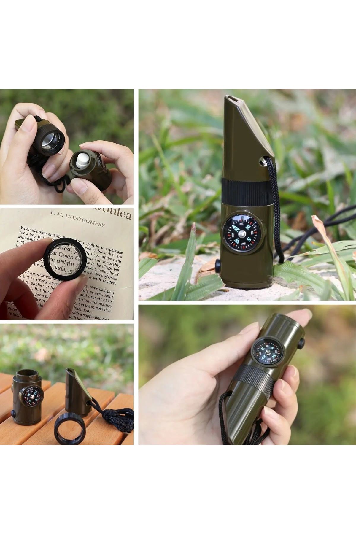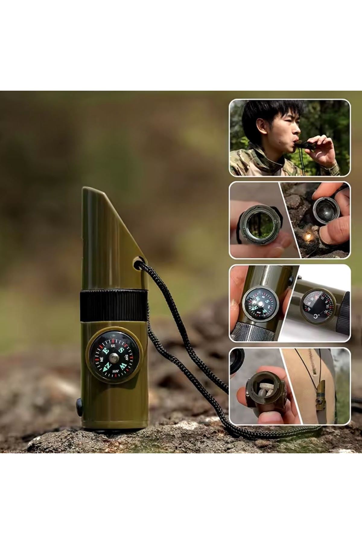 🔦 El Feneri: Gece yolculuklarında ve düşük ışık koşullarında pratik aydınlatma sağlar. 🌡️ Termometre: Hava sıcaklığını anında kontrol etmenizi sağlar. 🧭 Pusula: Yönünüzü bulmanıza yardımcı olarak, kaybolma riskinizi en aza indirir. 🔍 Büyüteç: Küçük detayları net bir şekilde görmenizi sağlar. 📦 Depolama Bölmesi: Küçük eşyalarınız için saklama alanı sunar. 📢 Düdük: Acil durum sinyalleri göndererek çevredeki dikkatleri üzerinize çeker.