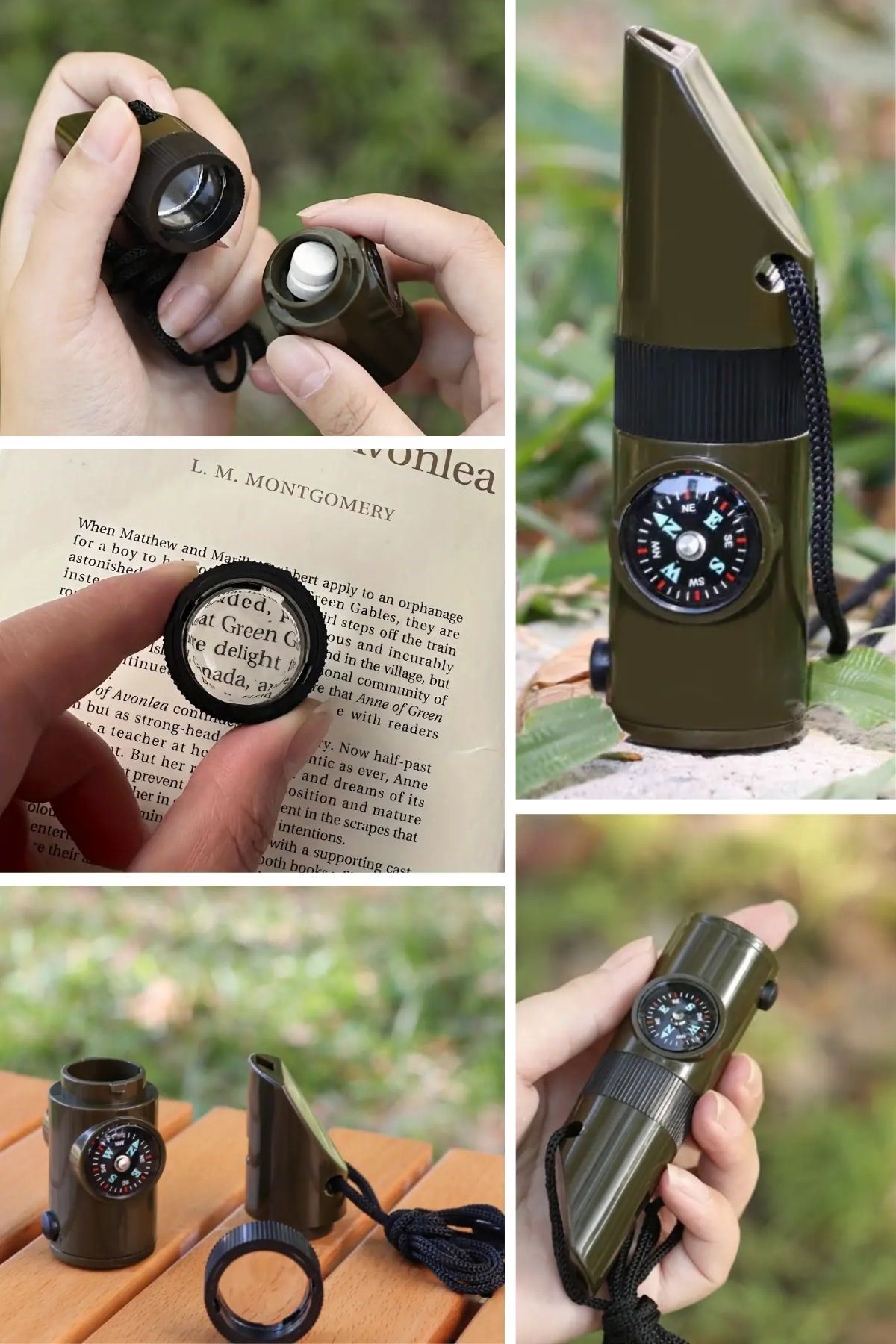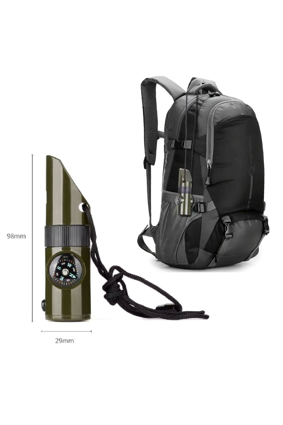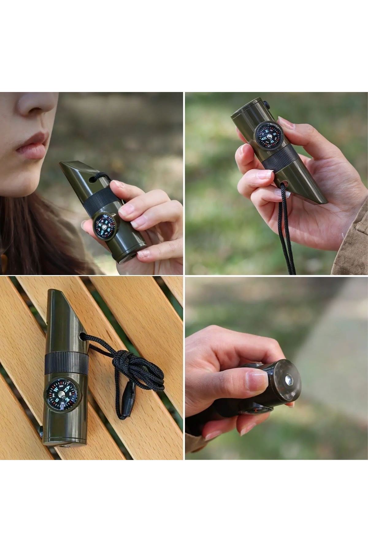 🔦 El Feneri: Gece yolculuklarında ve düşük ışık koşullarında pratik aydınlatma sağlar. 🌡️ Termometre: Hava sıcaklığını anında kontrol etmenizi sağlar. 🧭 Pusula: Yönünüzü bulmanıza yardımcı olarak, kaybolma riskinizi en aza indirir. 🔍 Büyüteç: Küçük detayları net bir şekilde görmenizi sağlar. 📦 Depolama Bölmesi: Küçük eşyalarınız için saklama alanı sunar. 📢 Düdük: Acil durum sinyalleri göndererek çevredeki dikkatleri üzerinize çeker.