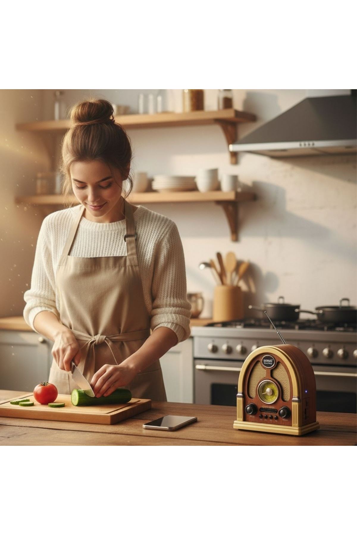 ✔️ Kubbe Model Retro Tasarım: Ahşap detayları ve klasik formuyla bulunduğu ortama nostaljik bir hava katar. ✔️ Bluetooth Bağlantısı: Telefon, tablet veya bilgisayarınızla kolayca eşleştirerek kablosuz müzik keyfi yaşayın. ✔️ FM/AM Radyo Desteği: Güncel haberleri takip edin, sevdiğiniz radyo istasyonlarını net ve güçlü ses kalitesiyle dinleyin. ✔️ Şarjlı ve Taşınabilir: Dahili bataryası sayesinde priz bağımlılığı olmadan istediğiniz yerde kullanabilirsiniz. ✔️ Orta Boy – Güçlü Performans: Kompakt boyutlarına rağmen tatmin edici hoparlör gücüyle net, temiz ve dengeli ses deneyimi sunar.