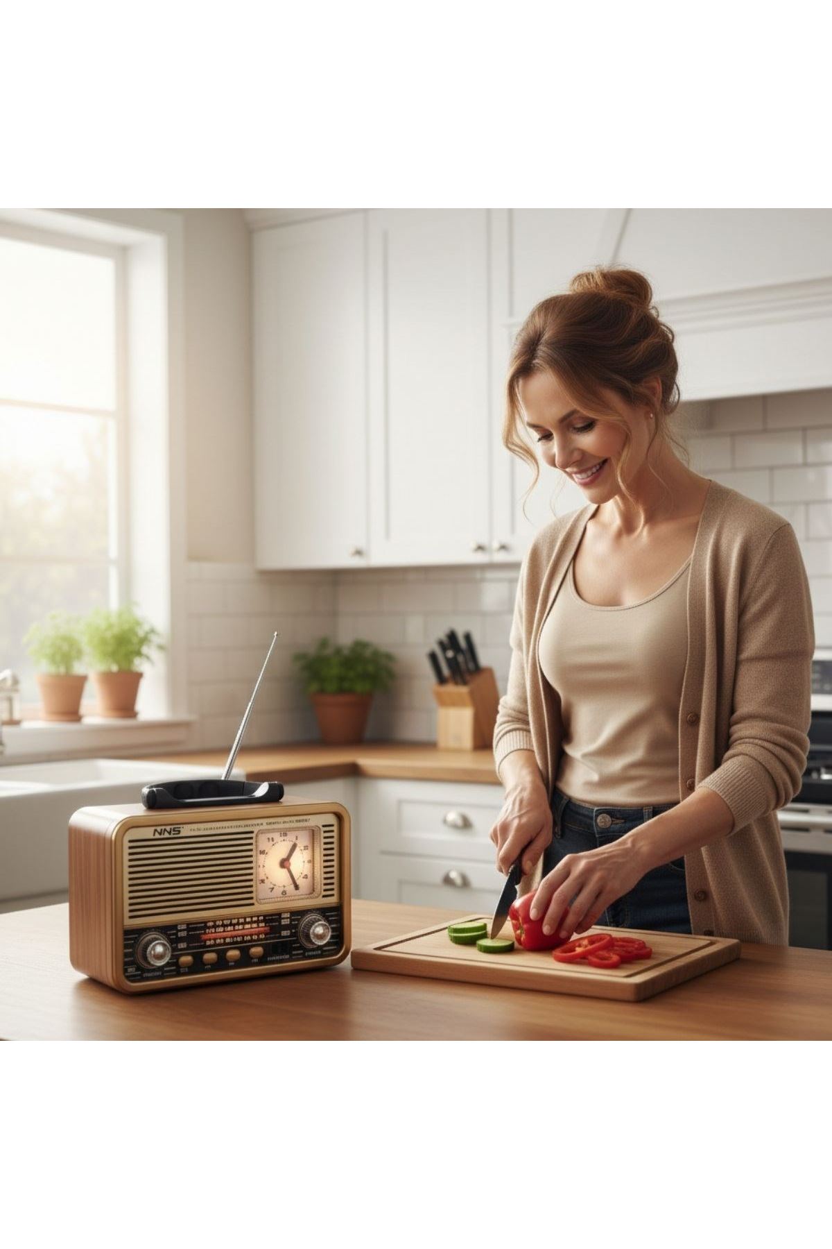 Geçmişin retro havasını modern teknolojinin konforuyla yaşamak isteyenler için BUFFER® Orta Boy Saat Göstergeli Retro Bluetooth Hoparlörlü Radyo NS-8898 ideal seçimdir!