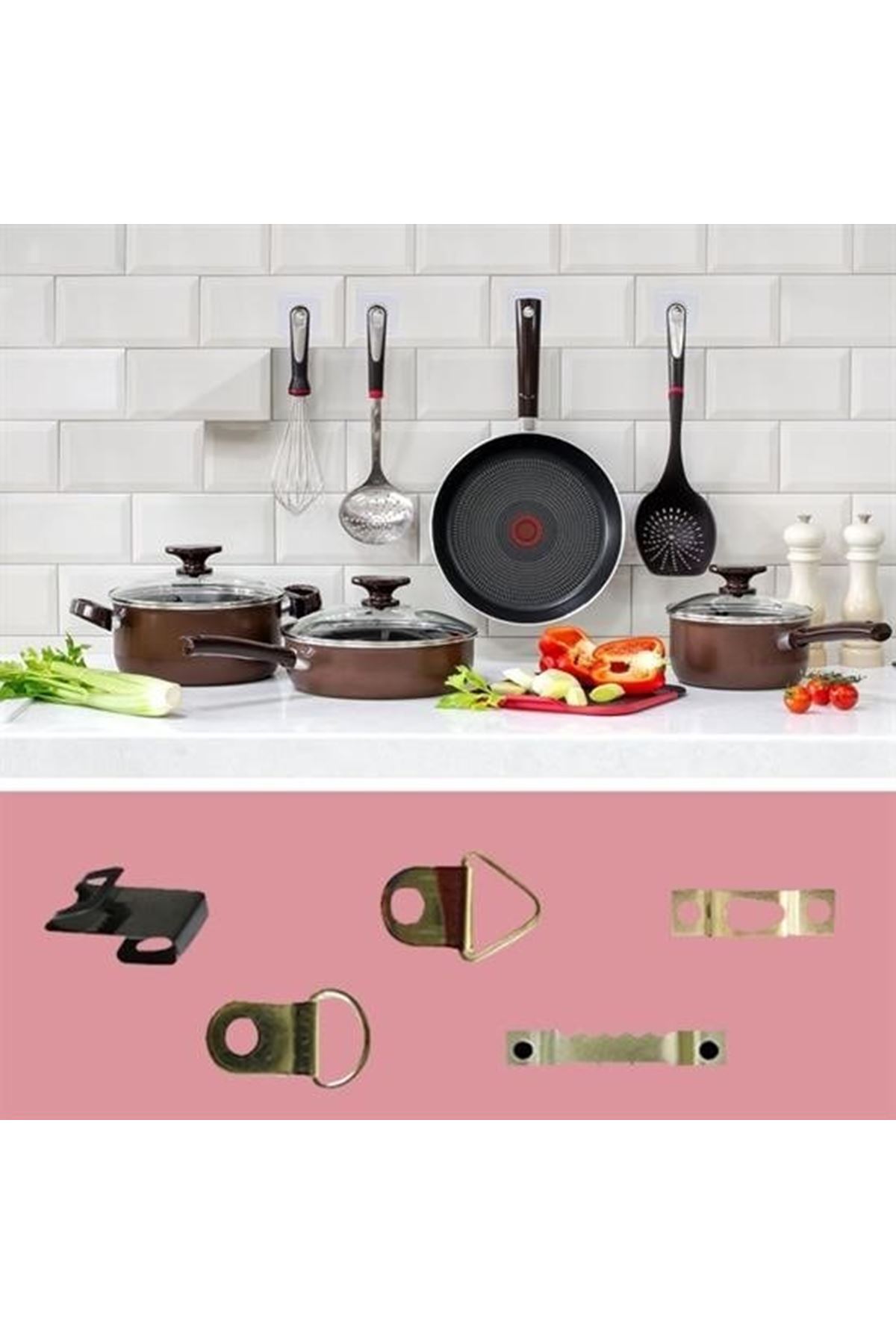 BUFFER® Süper Güçlü Çerçeve Askısı Pin Delgisiz Vidalı Tırnak Kanca Yapışkanlı Mutfak Banyo Raf Tutucu Askı 5 Adet