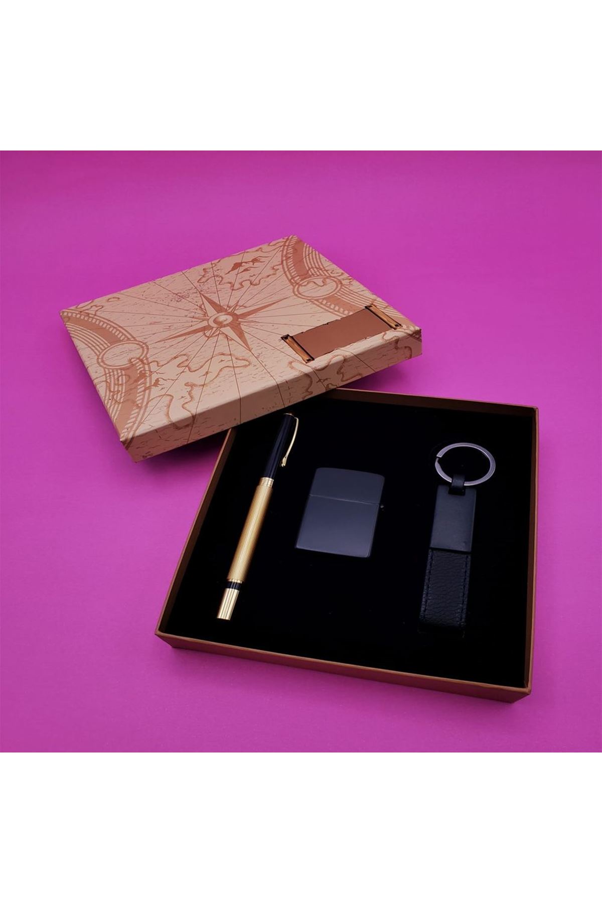 * Kutu Kaliteli Mukavva Malzemeden Üretilmiştir. * Anahtarlık Kaliteli Deri Ve Metal Malzemeden Üretilmiştir.* Çakmak Kaliteli Metal Malzemeden Üretilmiştir.* Siyah Mat Çakmak Zippo Çakmaktır.(Benzinsiz Gönderilmektedir.)* Kalem Metal Malzemeden Üretilmiştir Olup Rollerdir.