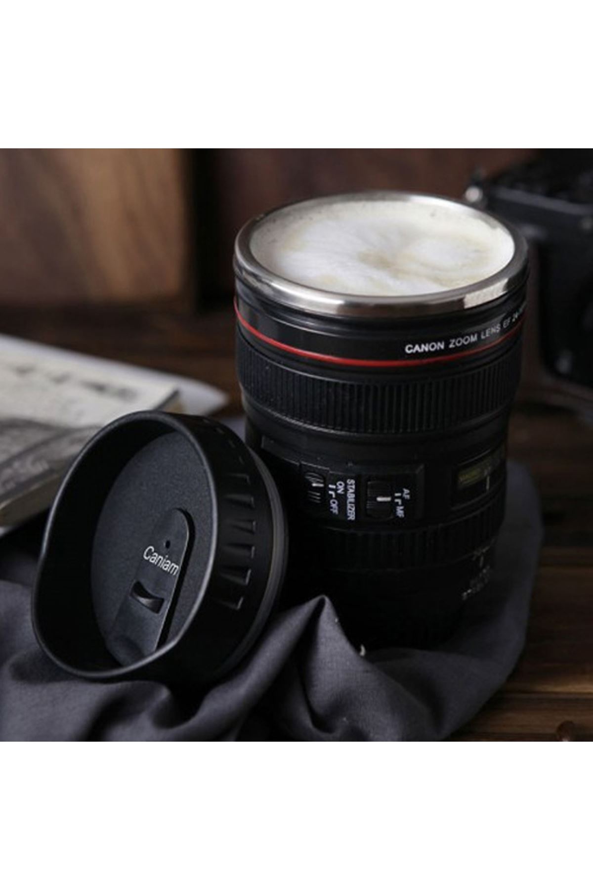 İçi Çelik Paslanmaz Objektif Tasarımlı Lens Kupa BardakLens Kupa Bardakİçinin Çelik Olması Sayesinde Sıcak Ve Soğuğu Uzun Süre Muhafaza Edebilir.Fotoğraf Makinesi Objektifi Görünümündedir.