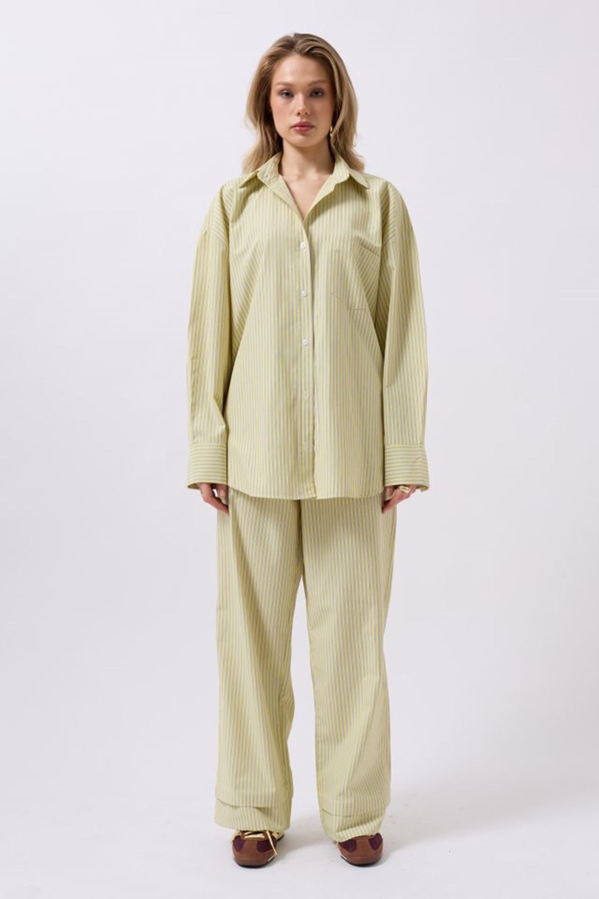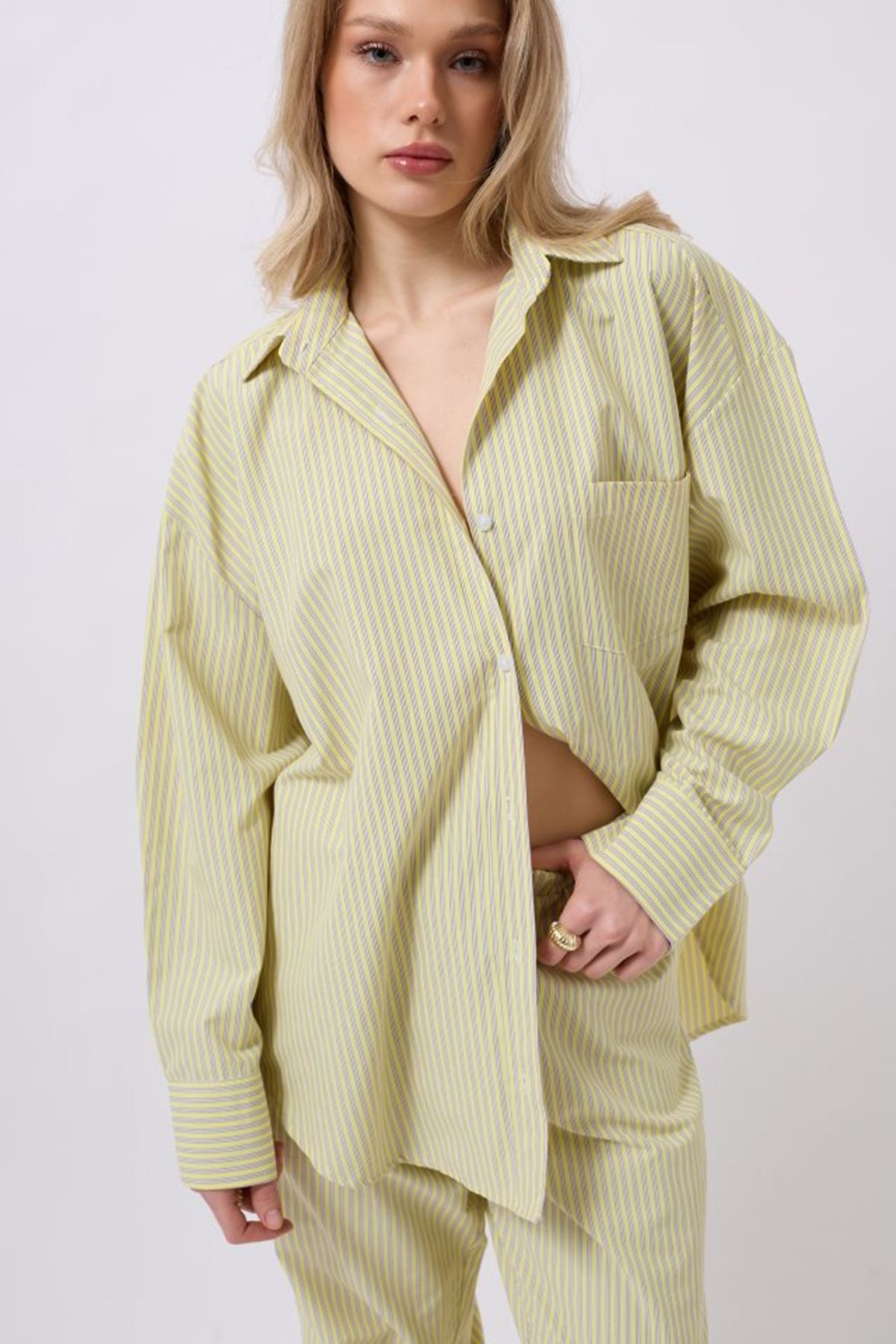 Çizgili Cep Detay Gömlek