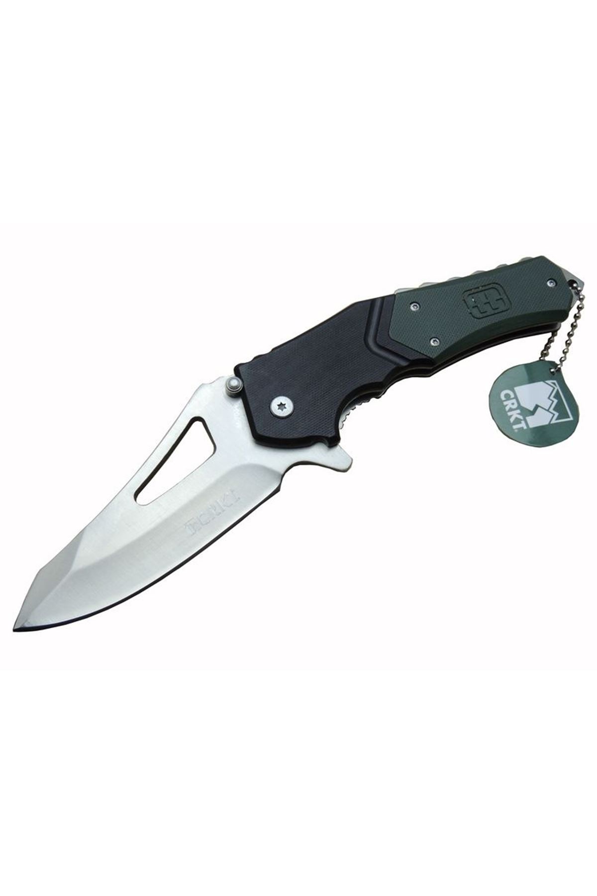 CRKT CR 0062 Gri Oluklu Kamp Çakı 17,5 cm - Otomatik, Kılıflı, Kutulu