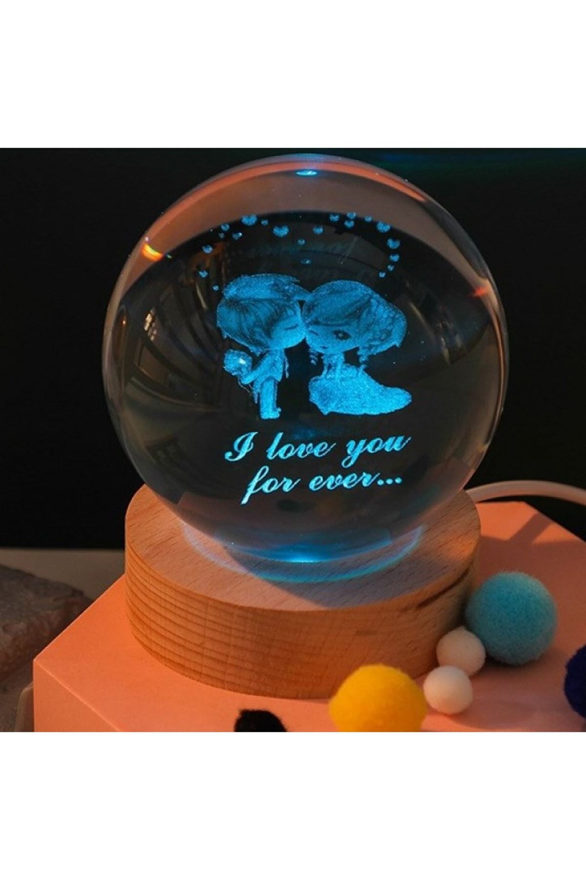 Dekoratif Öpüşen Sevgili Tasarımlı Ahşap altlıklı Işıklı Cam Küre Büyük Boy