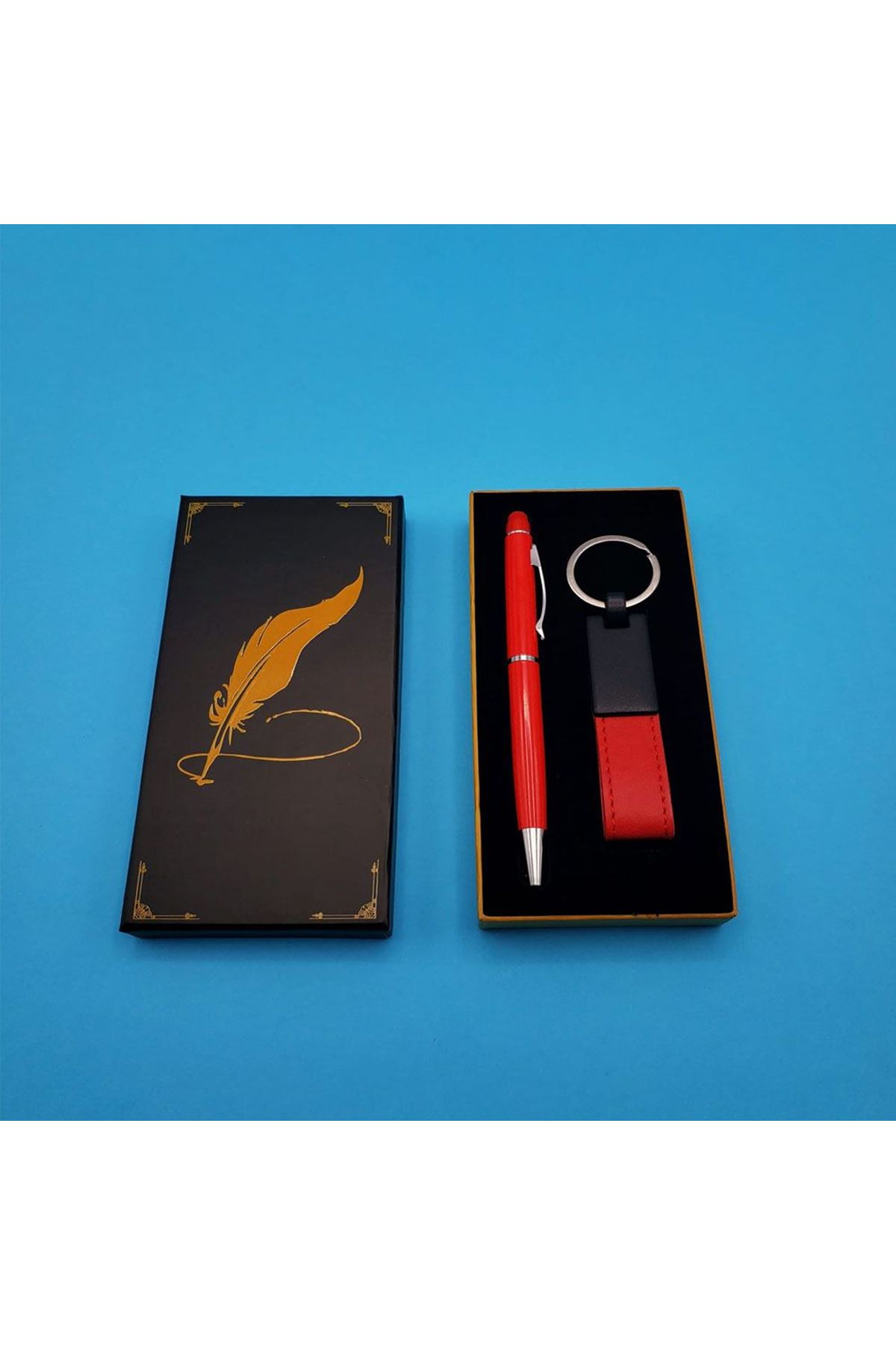 * Kutu Kaliteli Mukavva Malzemeden Üretilmiştir. * Anahtarlık Kaliteli Deri Ve Metal Malzemeden Üretilmiştir.* Kalem Touchpendir.Telefonunuzu Kaleminizle Beraber Kullanabilirsiniz.* Kalem Kaliteli Metal Malzemeden Üretilmiş Olup Tükenmez Kalemdir.
