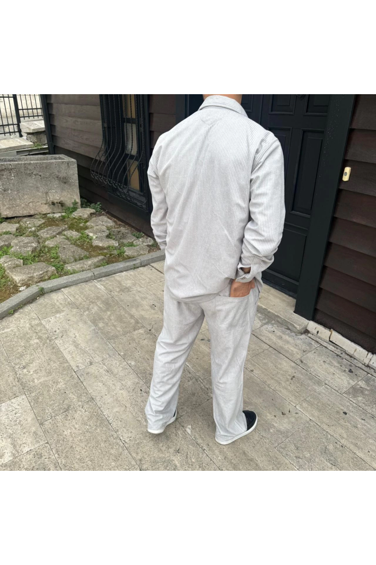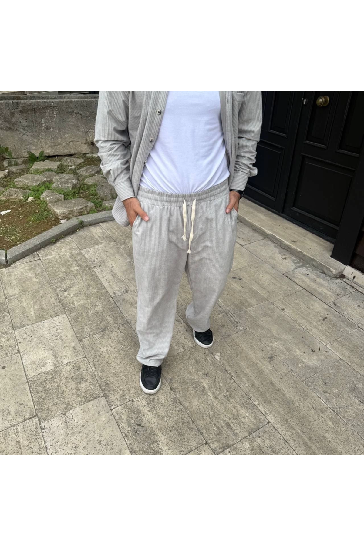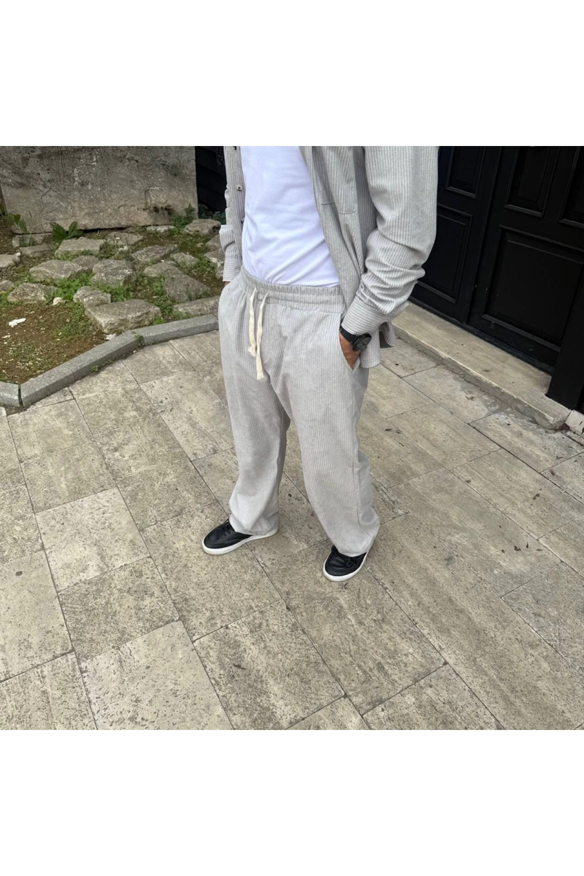 Erkek Fitilli Kadife Cepli Buggy Pantolon Oversize Rahat Kalıp - Gri