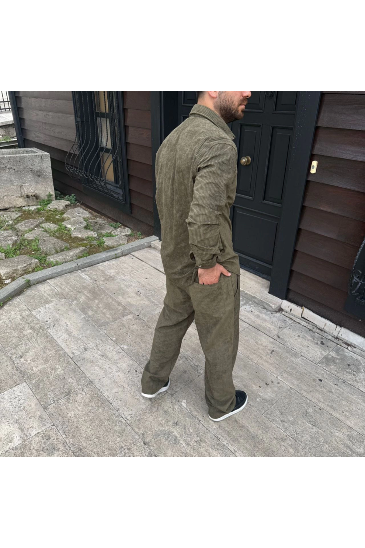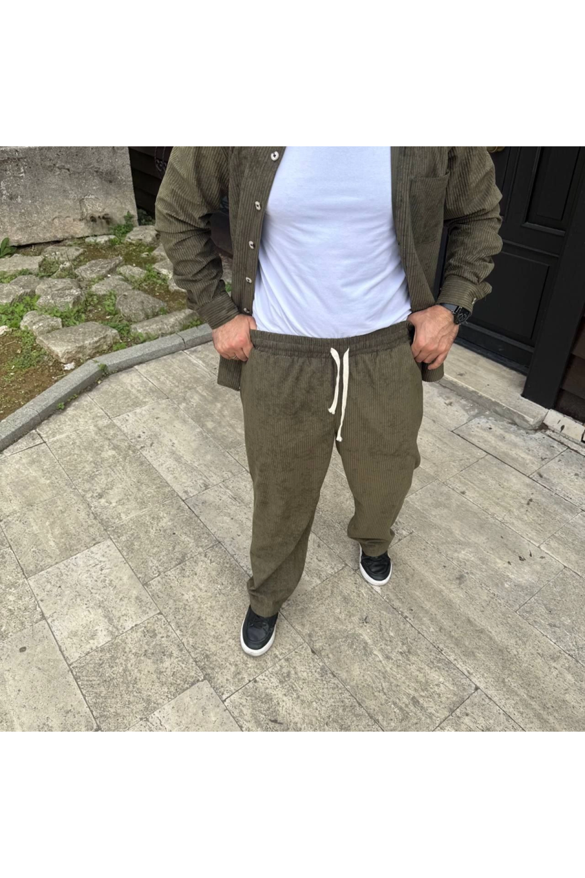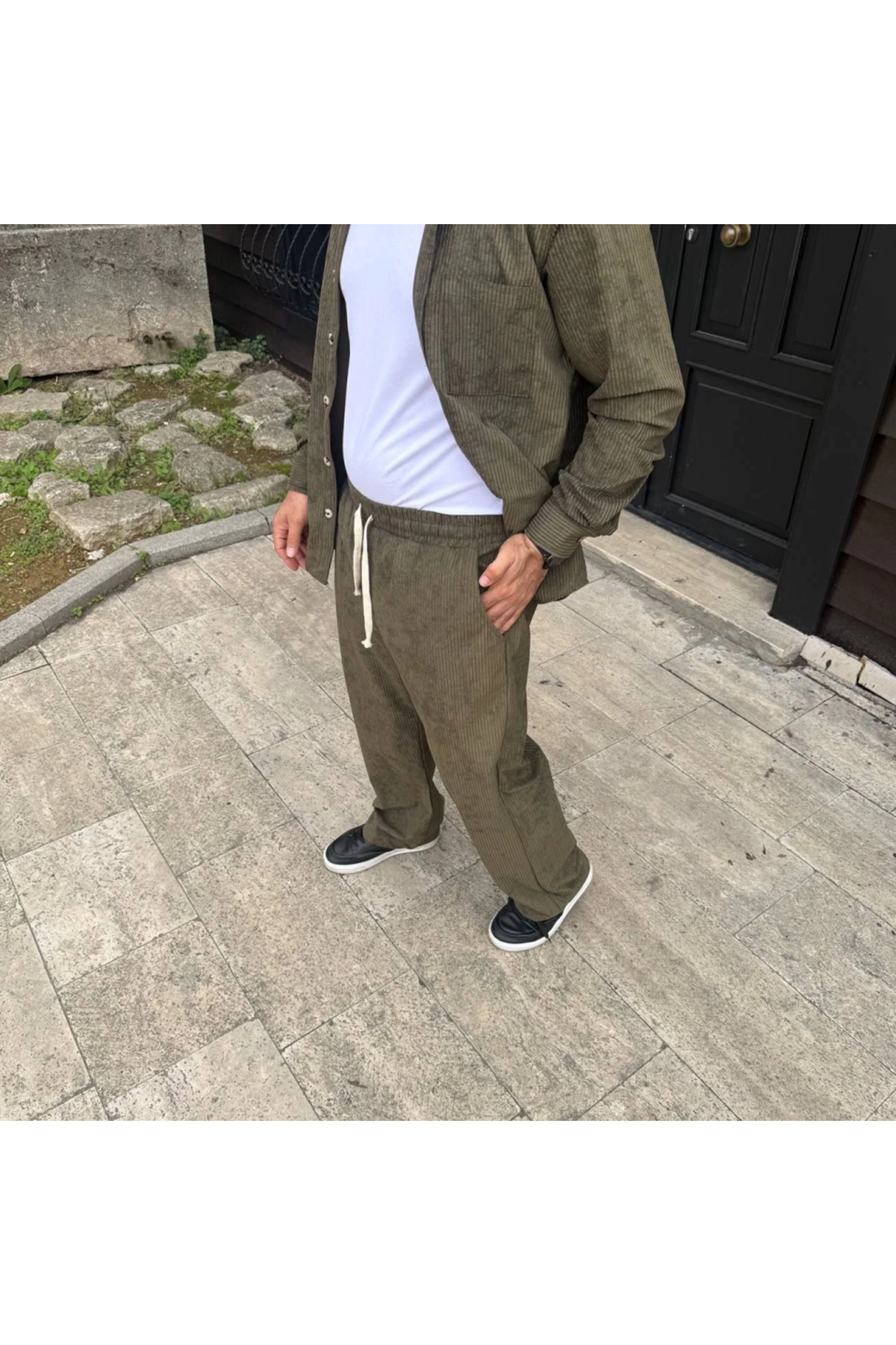 Erkek Fitilli Kadife Cepli Buggy Pantolon Oversize Rahat Kalıp - Haki