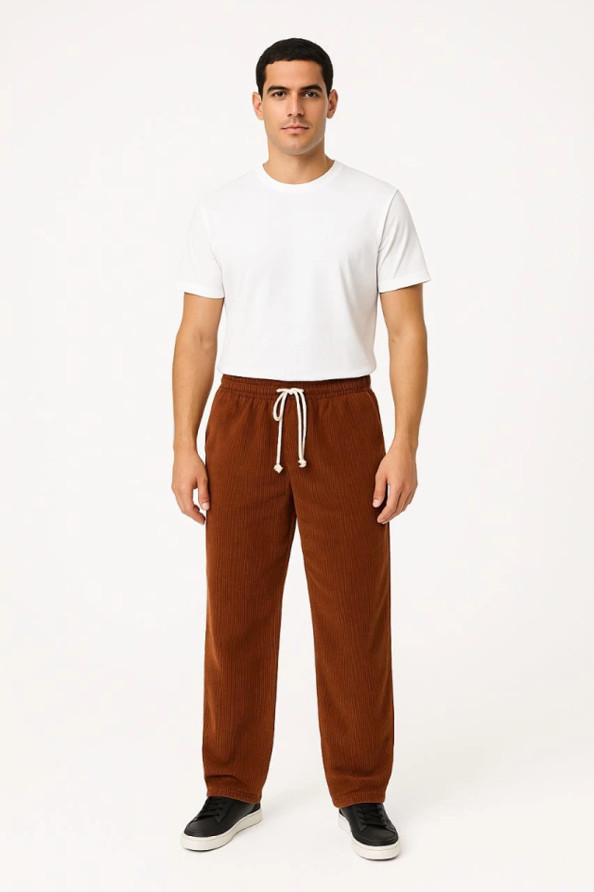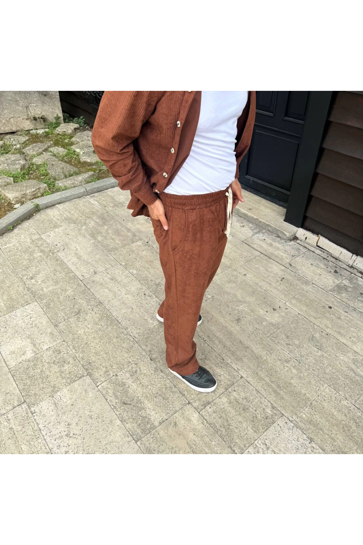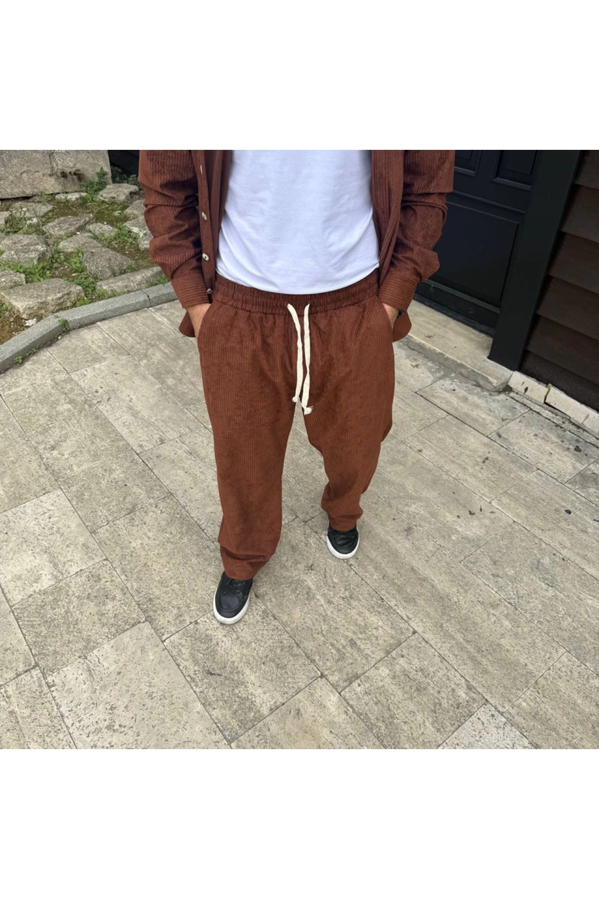 Erkek Fitilli Kadife Cepli Buggy Pantolon Oversize Rahat Kalıp - Kahverengi