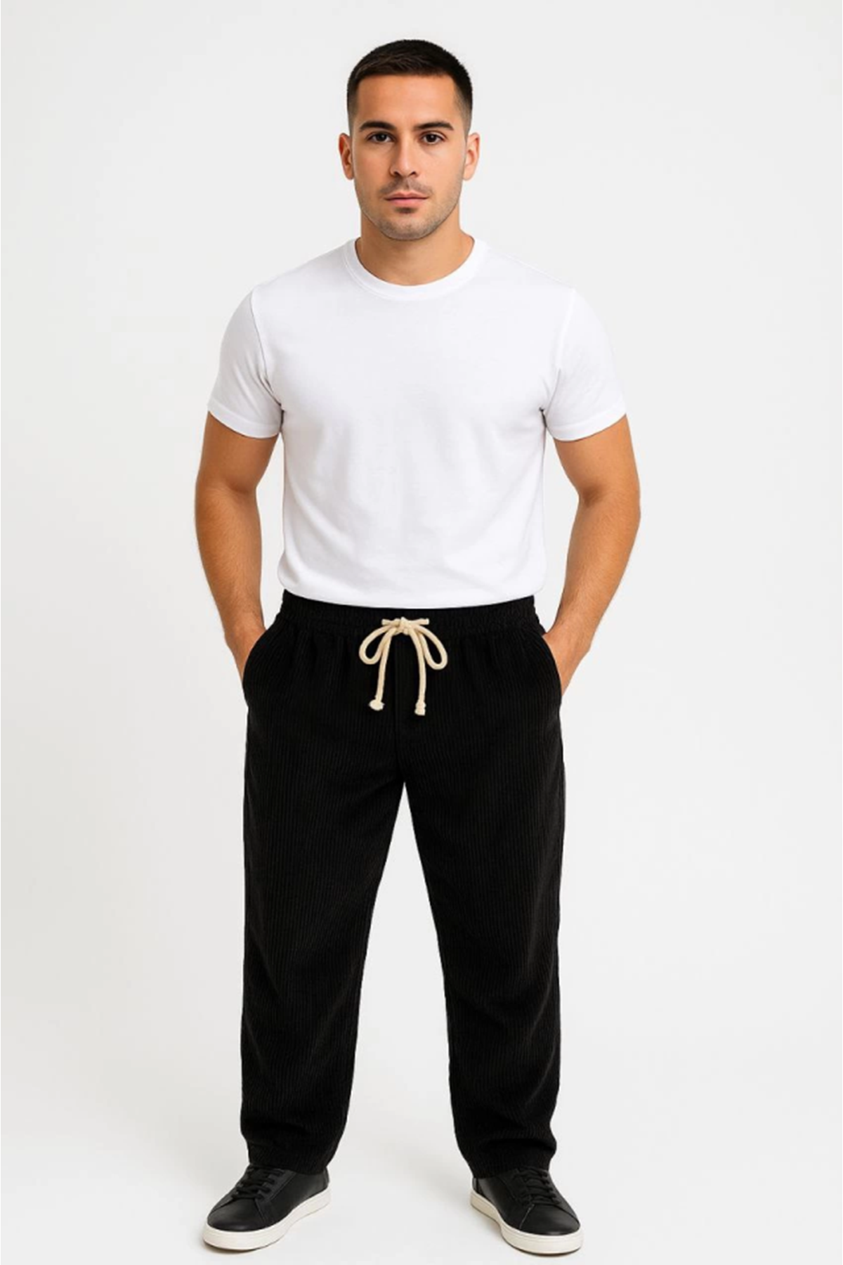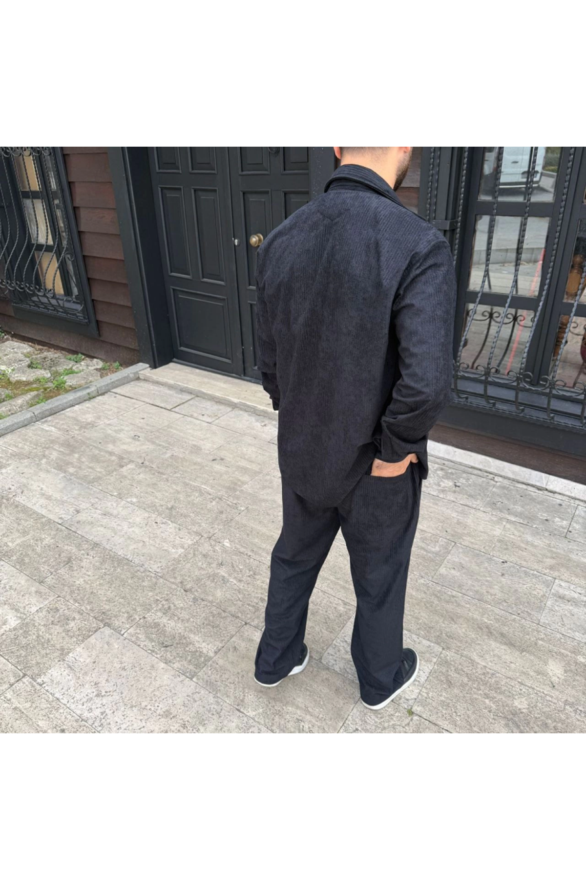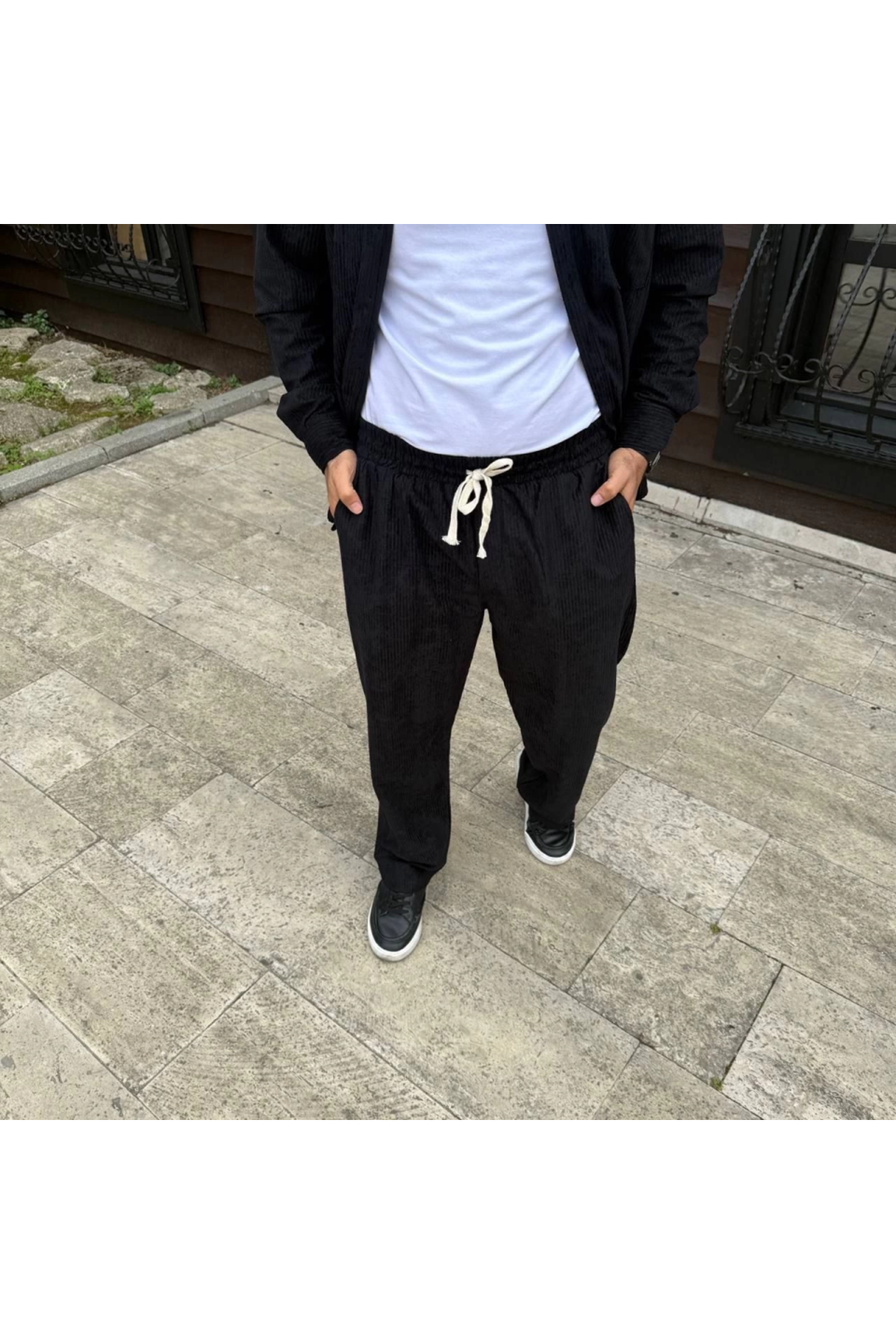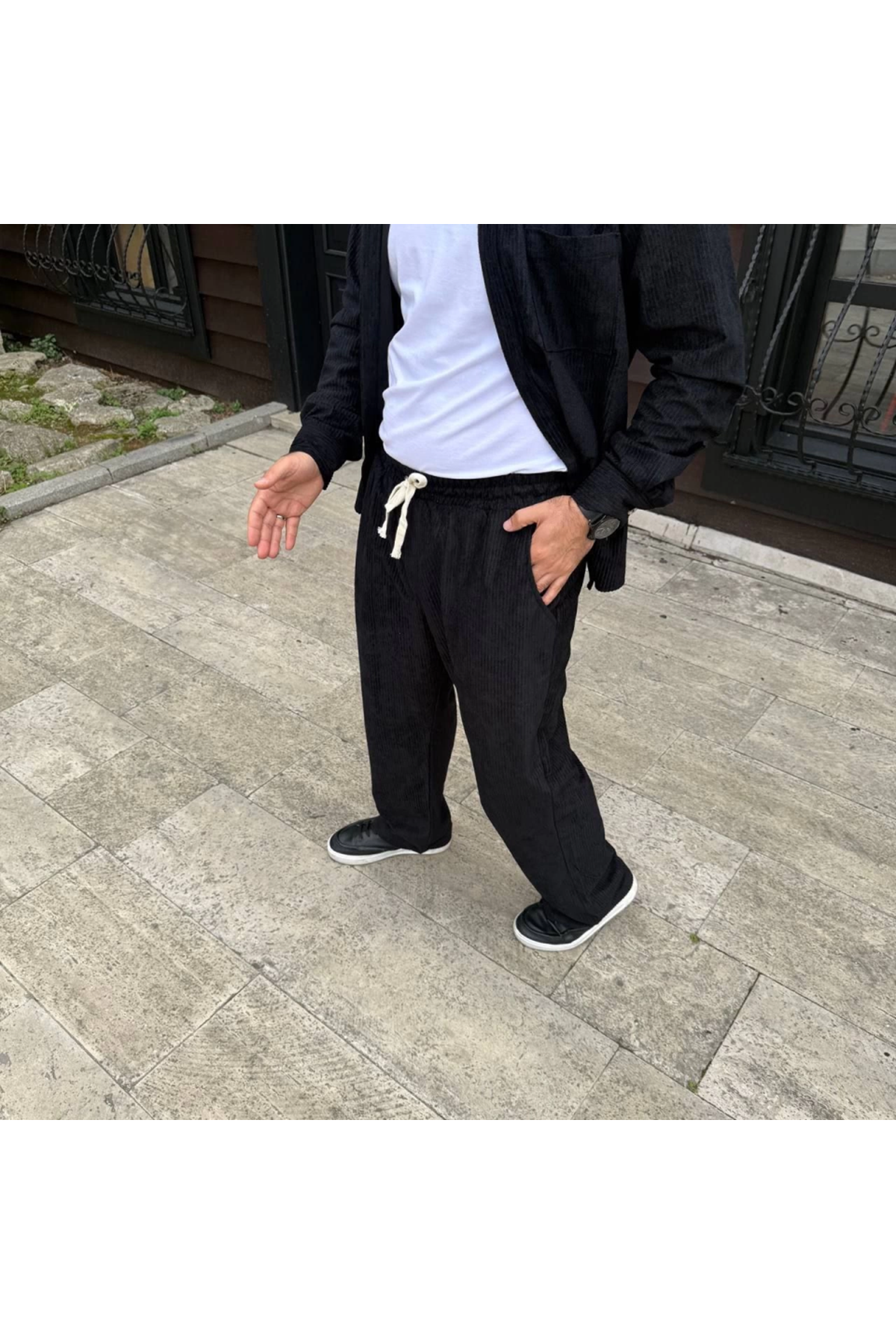 Erkek Fitilli Kadife Cepli Buggy Pantolon Oversize Rahat Kalıp - Siyah