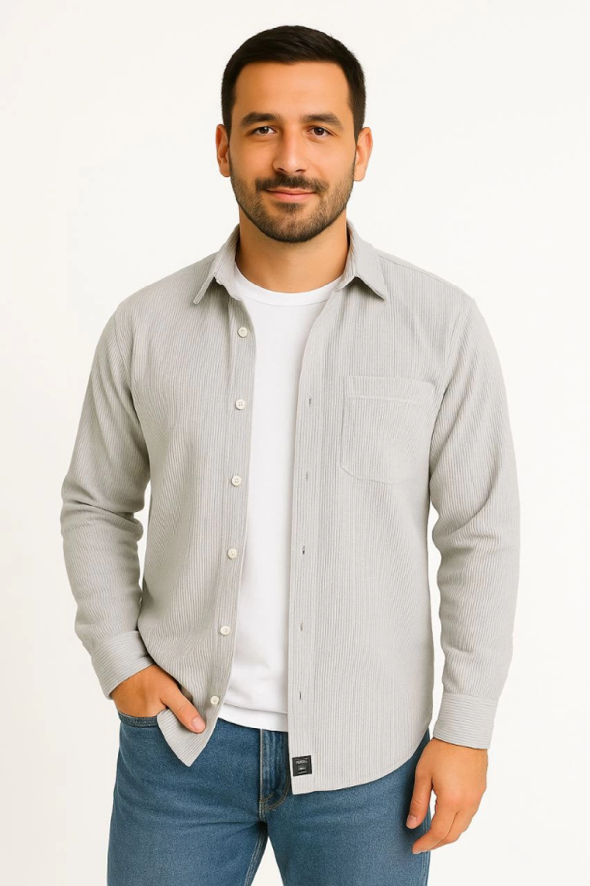 Erkek Fitilli Kadife Cepli Gömlek Oversize Rahat Kalıp - Gri