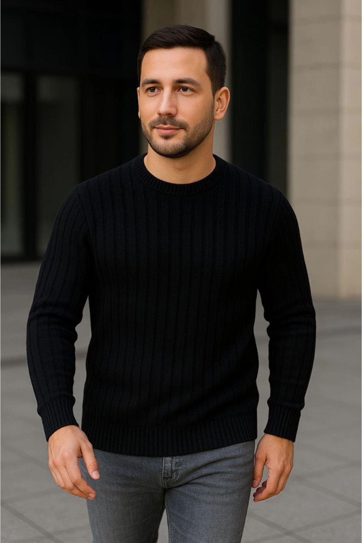 Erkek Fitilli Triko Kazak 4’lü Set – Beyaz, Haki, Bej, Siyah Kalın Dokuma Pamuklu Regular Fit Bisiklet Yaka Uzun Kollu Kışlık Ve Baharlık Rahat Triko Kombini