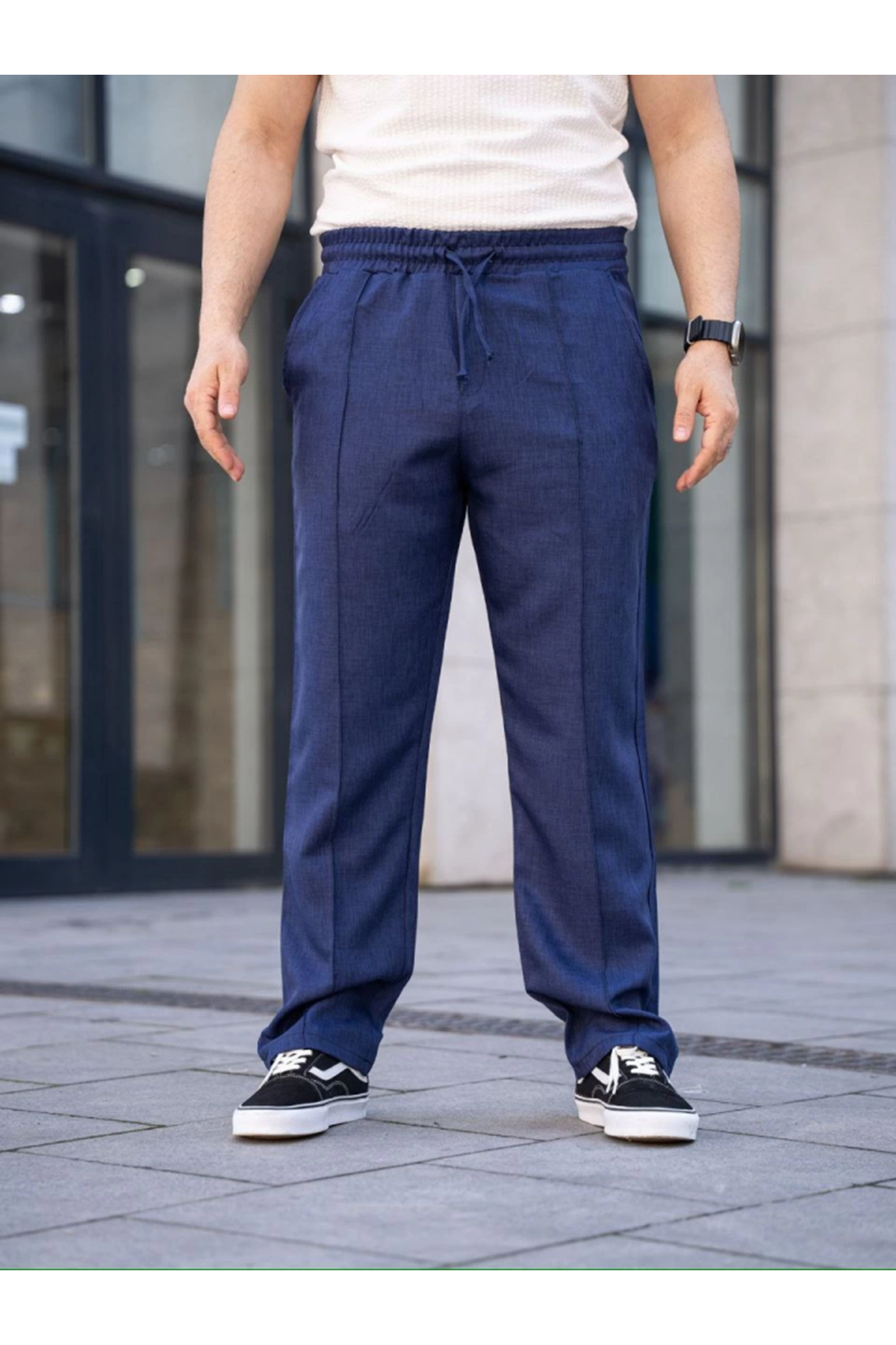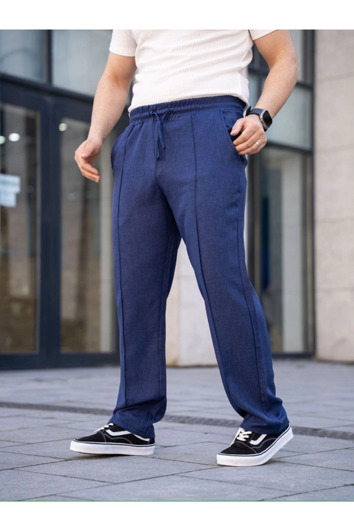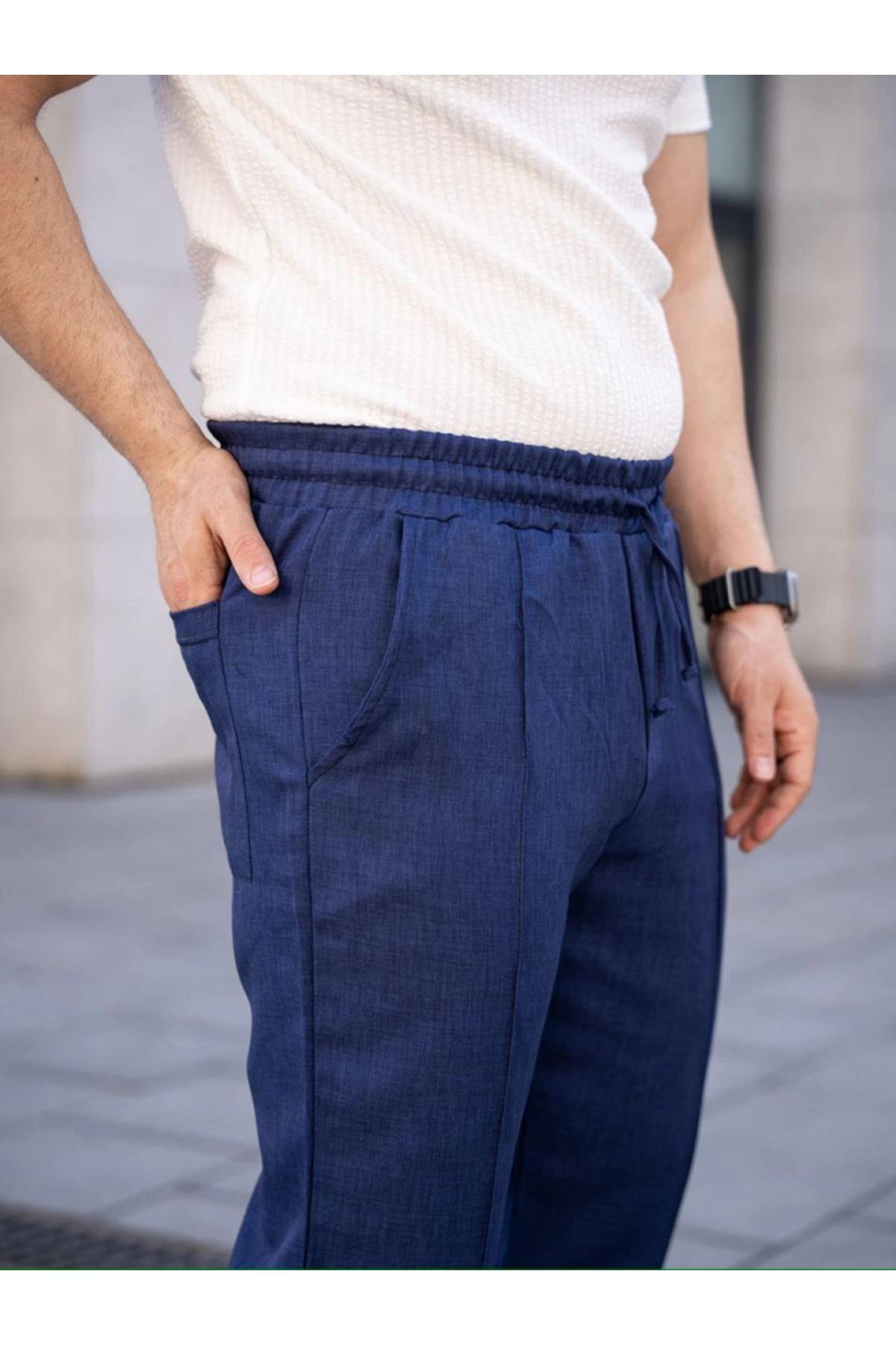 Erkek Keten Cepli Çıma Dikişli Jogger Buggy Pantalon Rahat Kalıp - Lacivert