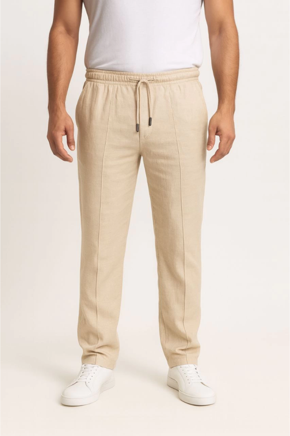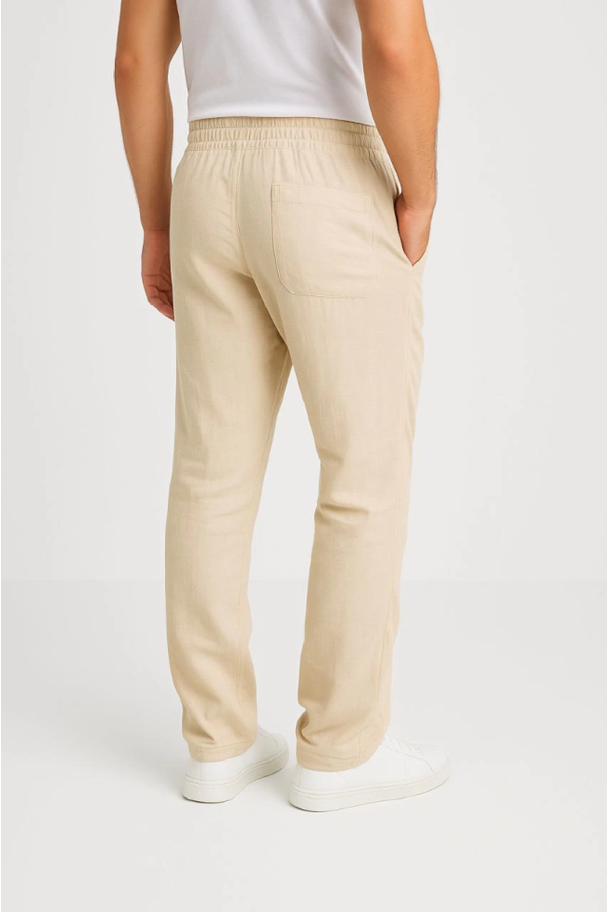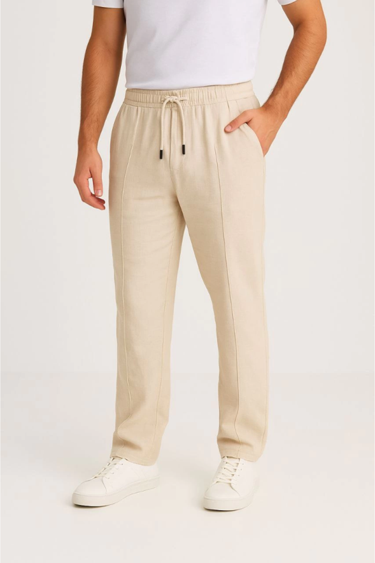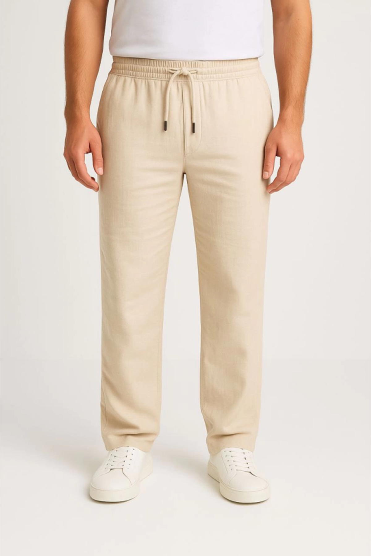 Erkek Keten Pantolon – Cepli, Beli Lastikli Ve Bağcıklı, Nefes Alan Rahat Kalıp, Yazlık Ve Baharlık Günlük Giyim, Şık - Konforlu Boru Paça Model - Bej