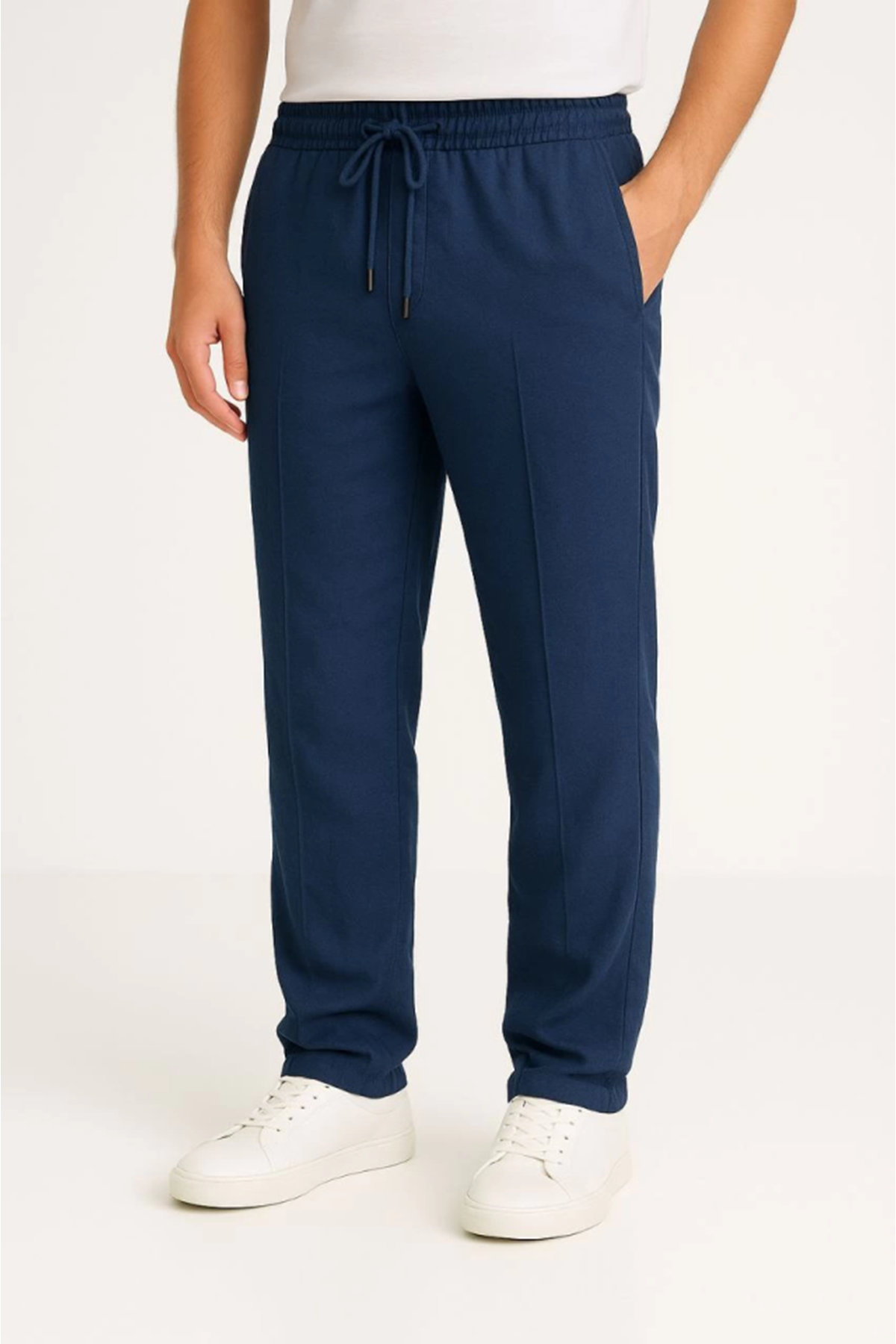 Erkek Keten Pantolon – Cepli, Beli Lastikli Ve Bağcıklı, Nefes Alan Rahat Kalıp, Yazlık Ve Baharlık Günlük Giyim, Şık - Konforlu Boru Paça Model - Lacivert