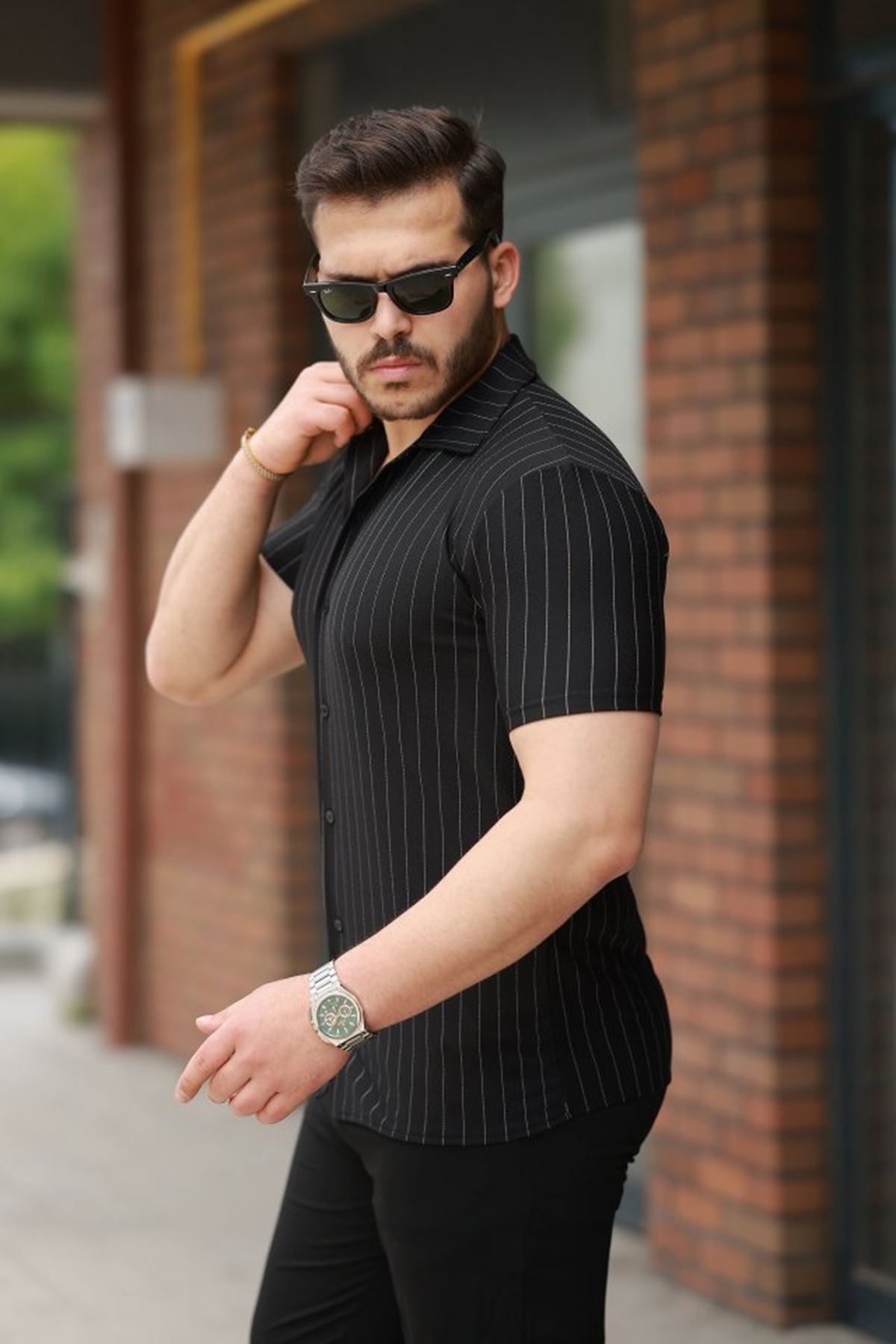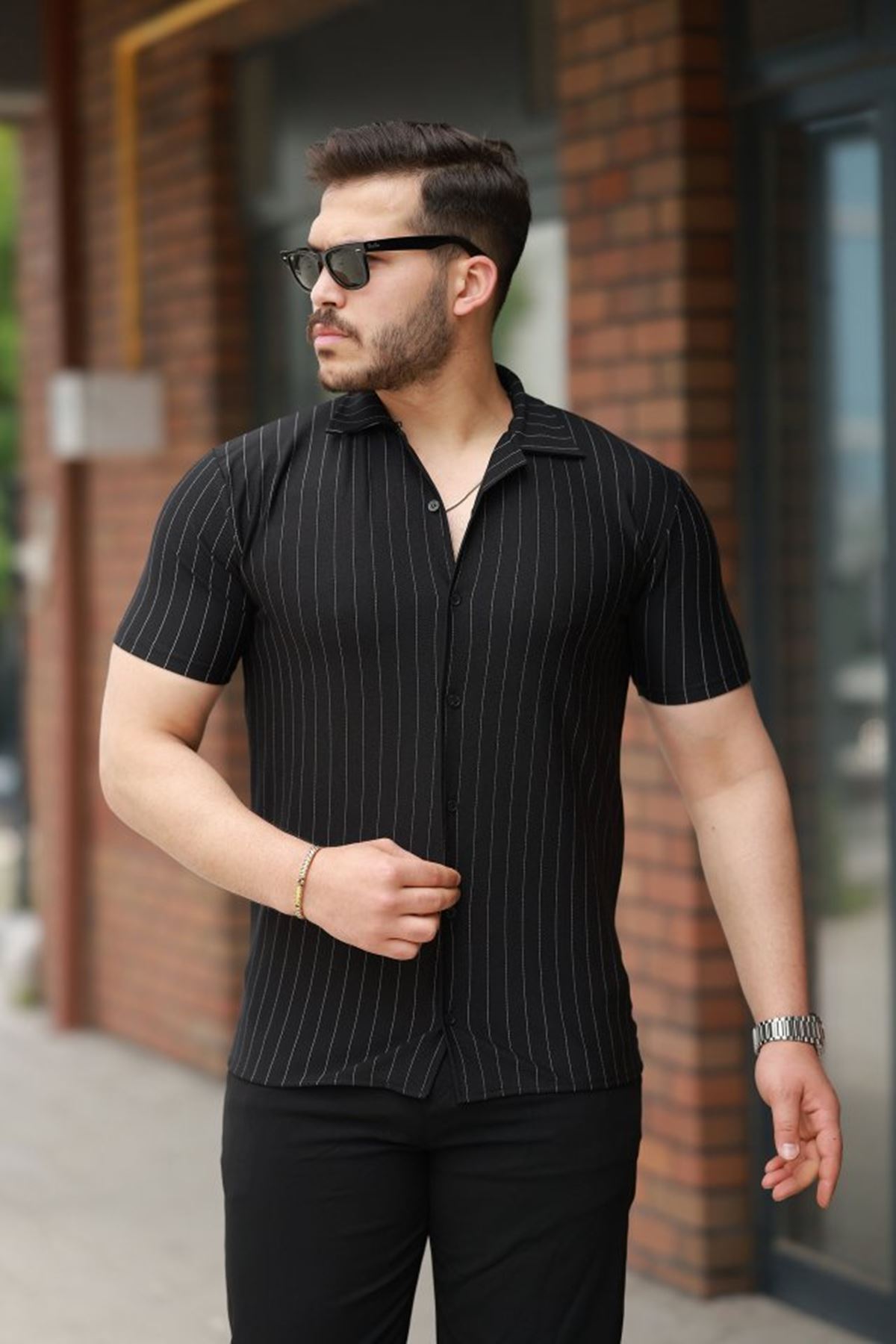Erkek Kısa Kollu çizgili Gömlek