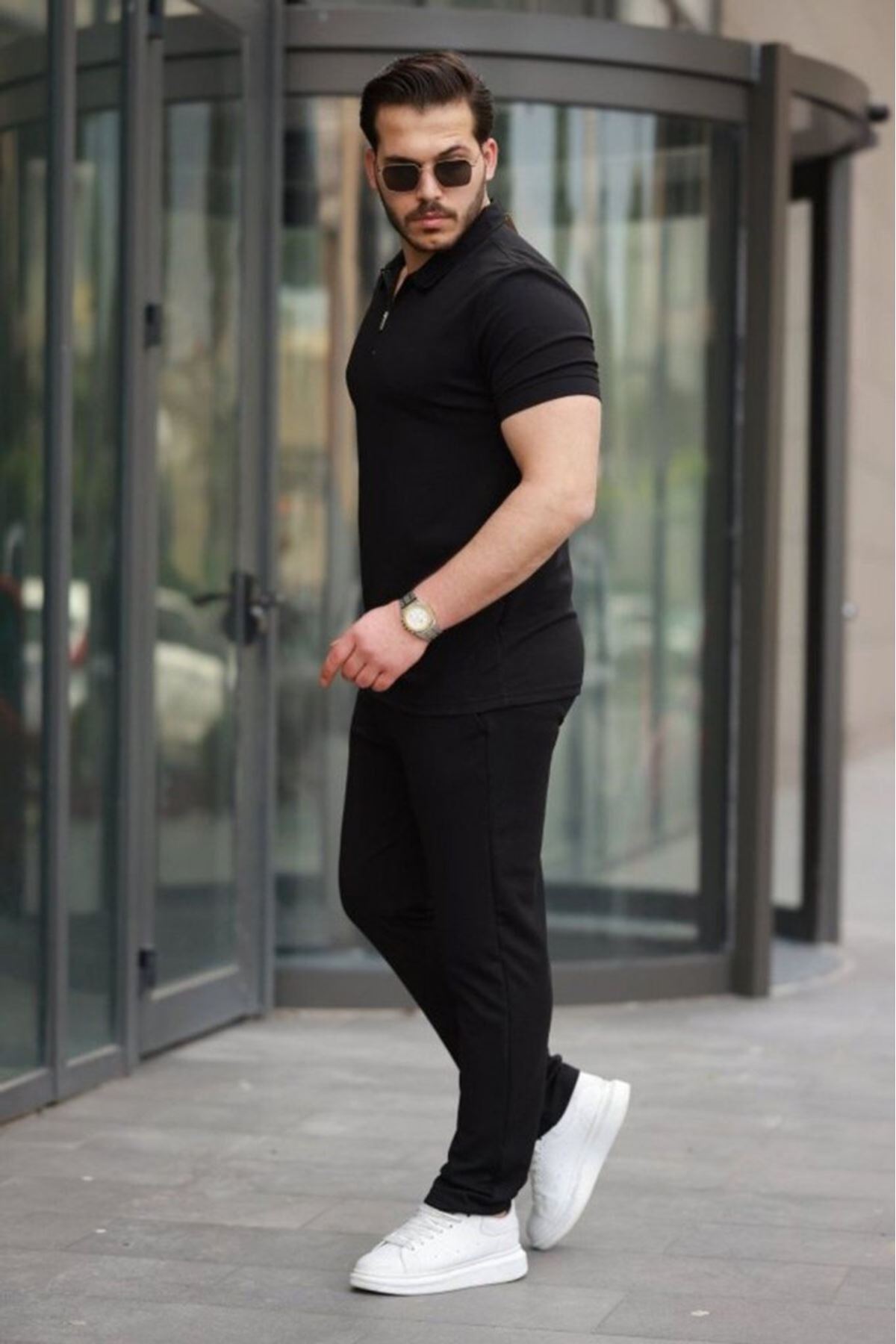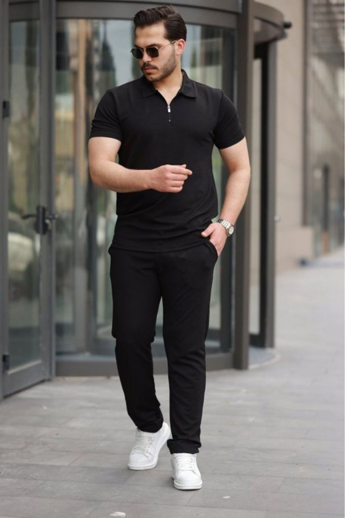 Erkek Kısa Kollu önden Fermuarlı Janjan Krep Bluz Ve Pantolon Ikili Takım