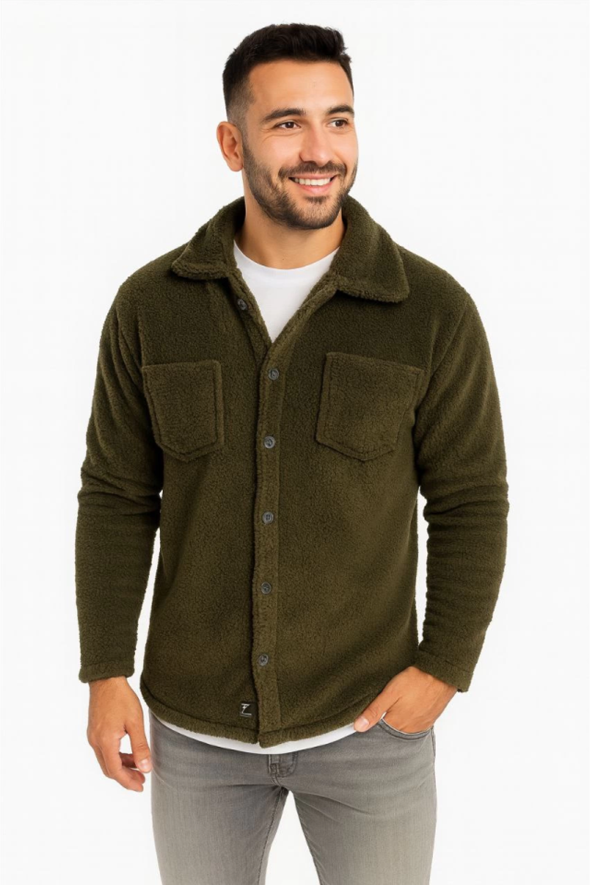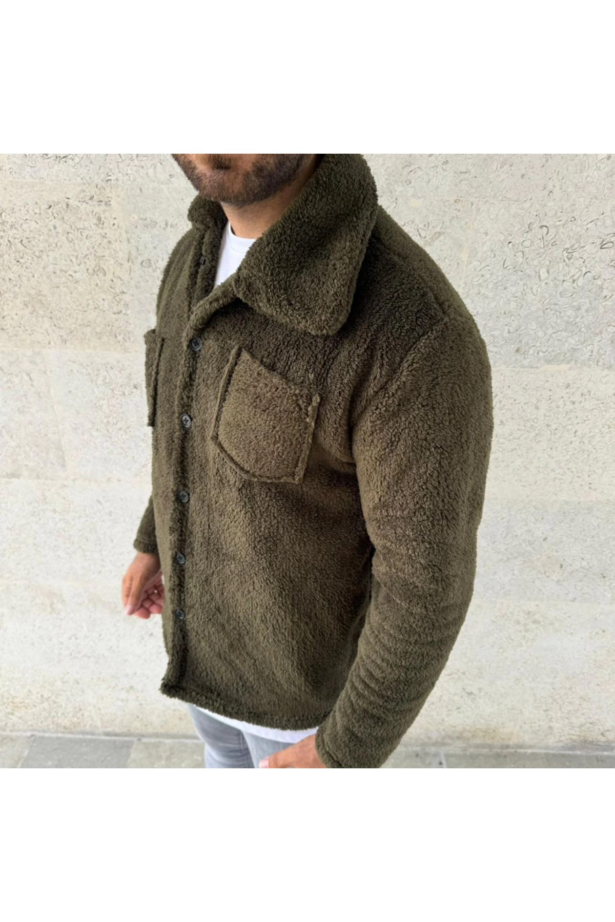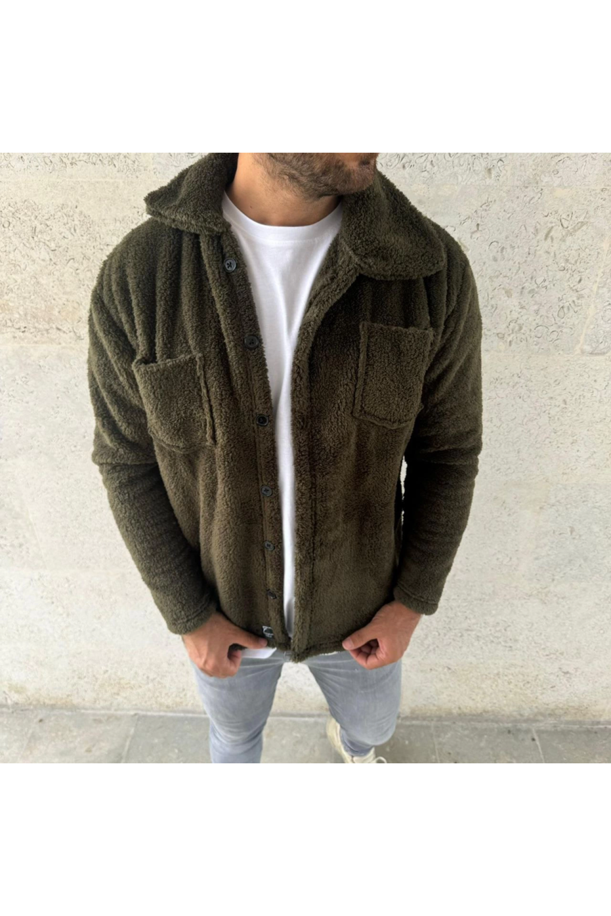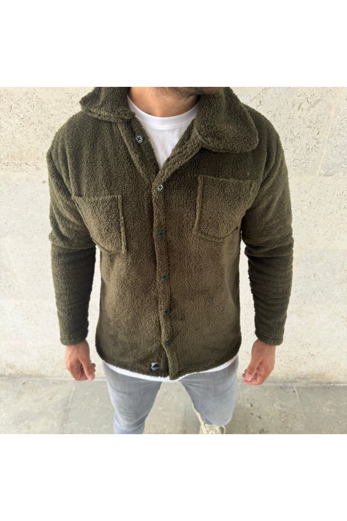 Erkek Pelüş Polar Hırka Gömlek – Yakalı, İlik Düğmeli, Göğüs Cepli, Yumuşak Dokulu Kışlık Regular Fit Rahat Günlük Model - Haki